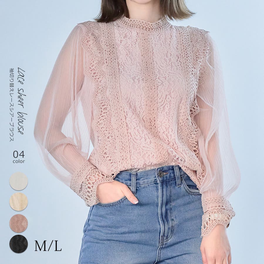 シアー袖の上品レースブラウス