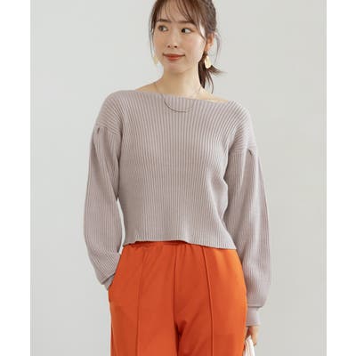 ボートネックボリューム袖ニット ニット レディース