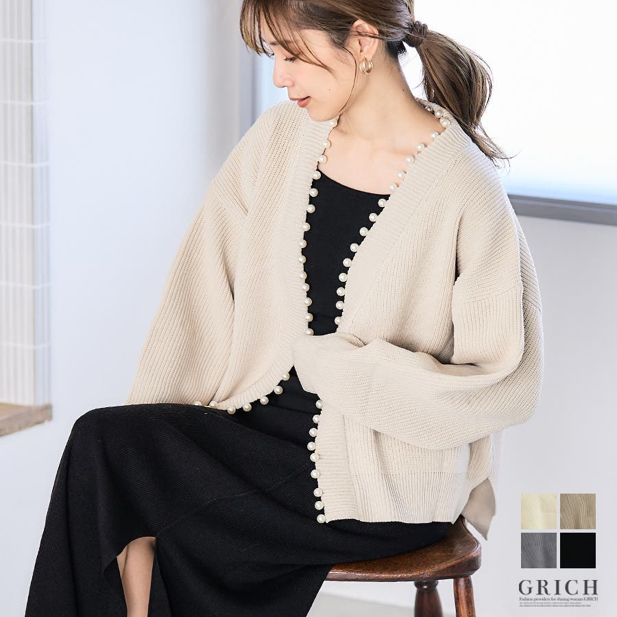 パール付きのゆったりカーディガン。