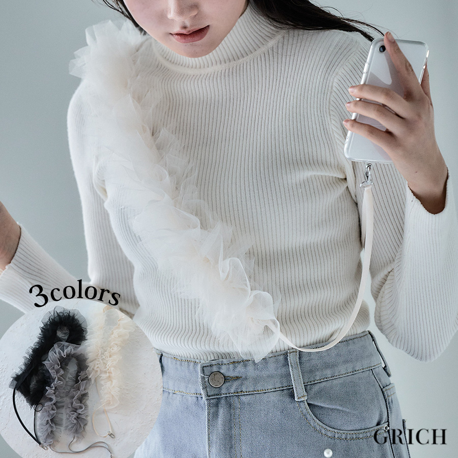 SS 春 春新作 春物 春コーデ 春ファッション 夏 夏新作 夏物 夏コーデ 夏ファッション 春夏 AW 秋冬 秋 秋新作 秋色 秋コーデ 秋ファッション 冬 冬新作 冬物 冬コーデ 冬ファッション 新着 新作 NEW 新発売 服 着痩せ きやせ 着痩せコーデ トレンド 流行 流行り 今どき 今風 今旬 高見え プチプラ お洒落 おしゃれ オシャレ 可愛い かわいい カワイイ 大人可愛い 大人かわいい 大人カワイイ きれいめコーデ きれいめカジュアル 大人カジュアル 大人コーデ 大人上品 女子会 服 洋服 レディース カジュアル トレンド 20代 30代 40代 50代 ママ ママコーデ アラサー アラフォー アラフィフ アラサーコーデ アラフォーコーデ アラフィフコーデ 一枚でも決まる 楽ちん キレイ見え らくちん ラクチン 通勤 オフィス 骨格ストレート 骨格ナチュラル 骨格ウェーブ イエベ ブルベ 体型カバー 着痩せ 細見え トップス スマホショルダー ストラップ チュール アクセサリー ギャザー フリル スマホストラップ チュールストラップ 携帯ストラップ おしゃれ たすき掛け 斜め掛け 肩掛け iphone アイフォン アイホン スマホ ギャラクシー Xperia ネックストラップ ブラック アイボリー グレー 黒 白