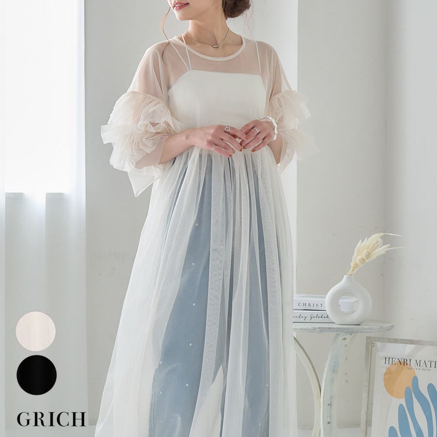 袖チュールフリルシアーワンピ [240223]