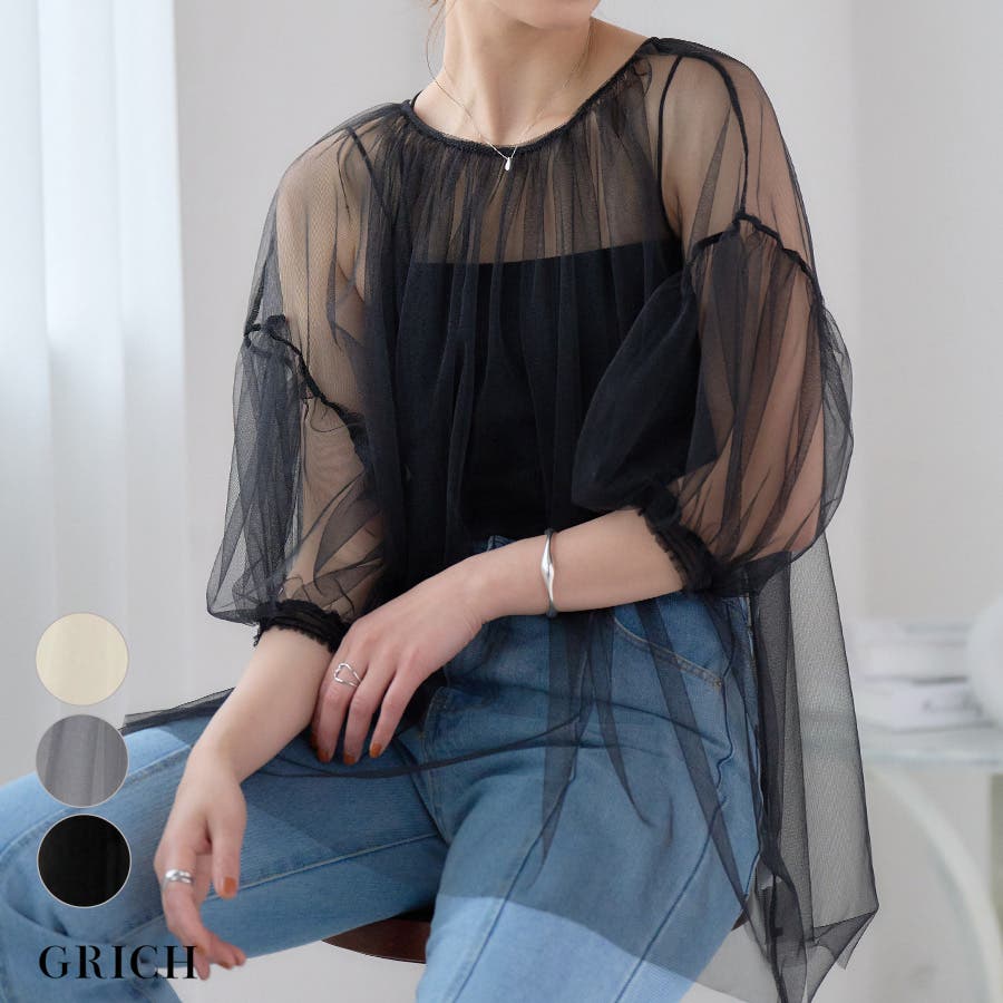 ラメチュールレイヤードギャザーブラウス チュール ブラウス