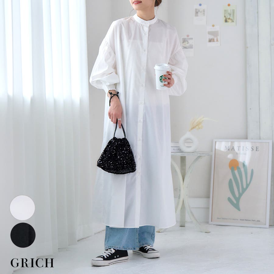 バンドカラーボリューム袖シャツワンピース シャツワンピース 春