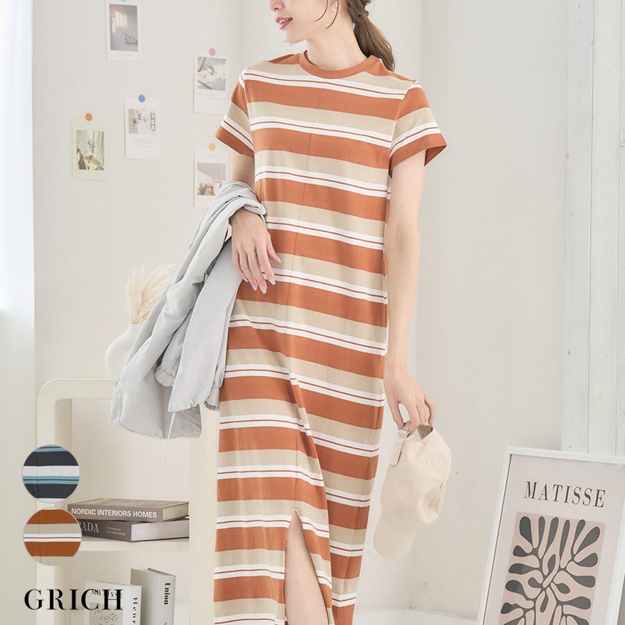 【チャコール】マルチボーダーコットンTシャツワンピース ワンピース 夏