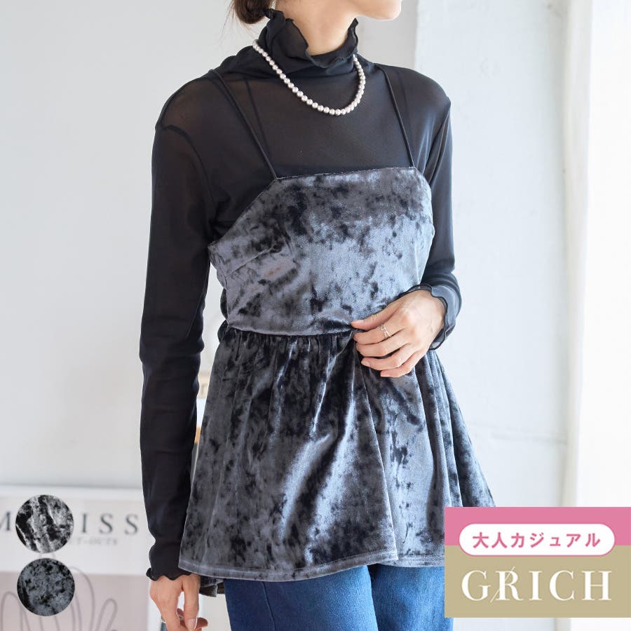 【G-RICH】バックオープンで魅せる クラッシュベロアペプラムキャミソール(秋冬)