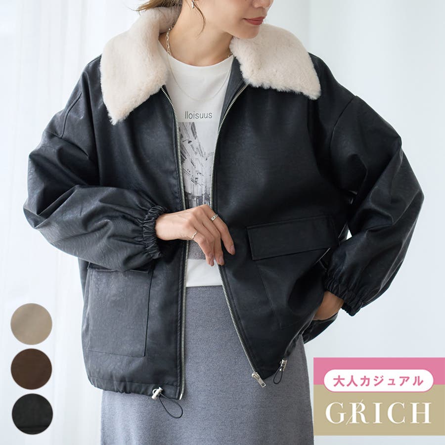 【G-RICH】2WAY仕様で楽しむ ファー付きフェイクレザーブルゾン(秋冬)