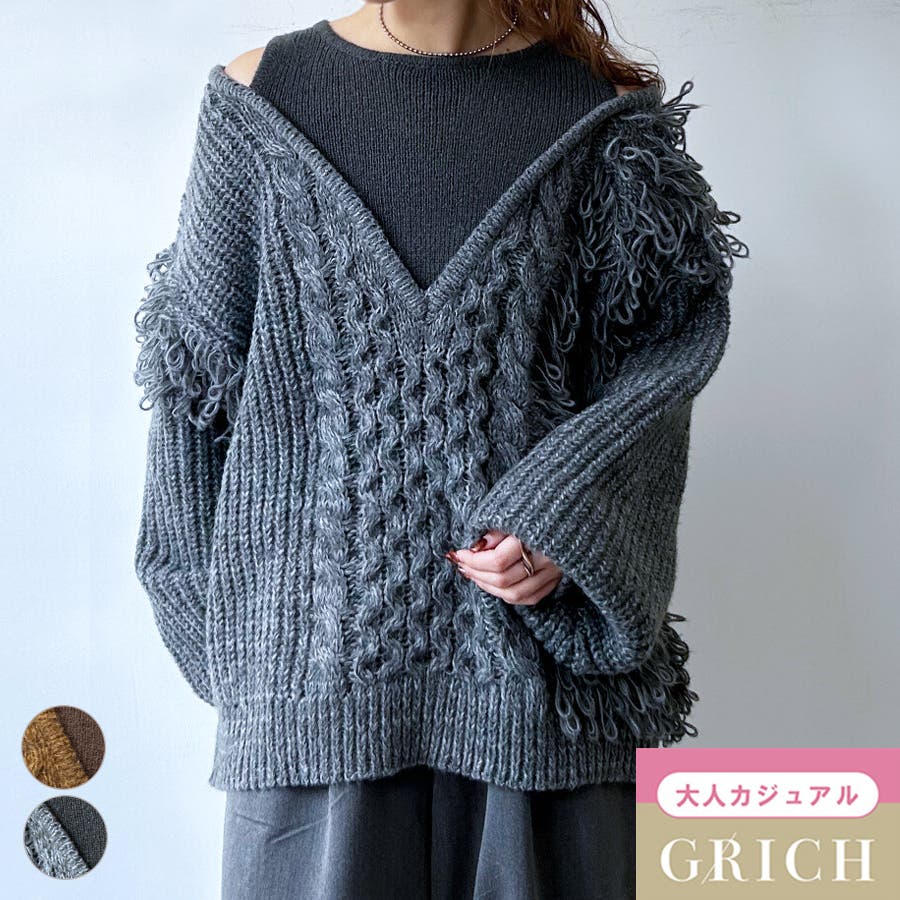 AW 秋冬 秋 秋新作 秋コーデ 秋ファッション 冬 冬新作 冬物 冬コーデ 冬ファッション 新着 新作 NEW 新発売 トレンド 流行 流行り 今どき 今風 今旬 高見え プチプラ お洒落 おしゃれ オシャレ 可愛い かわいい カワイイ 大人可愛い 大人かわいい 大人カワイイ きれいめコーデ きれいめカジュアル 大人カジュアル 大人コーデ 大人上品 女子会 服 洋服 レディース カジュアル トレンド 20代 30代 40代 50代 ママ ママコーデ アラサー アラフォー アラフィフ アラサーコーデ アラフォーコーデ アラフィフコーデ 一枚でも決まる 楽ちん キレイ見え らくちん ラクチン 通勤 オフィス 骨格ストレート 骨格ナチュラル 骨格ウェーブ イエベ ブルベ 体型カバー 着痩せ 細見え トップス ニット セーター 韓国 韓国ファッション 重ね着風 ループ編み ニット レディース 長袖 ゆったり ざっくり Vネック 秋 冬 オフショルダー フリンジ 体型カバー チュニック 大きいサイズ 大人 お尻が隠れる 深V セーター トップス プルオーバー 洗えるニット 洗濯可能 厚手 アシンメトリー オフショル レイヤードニット グレー 杢グレー ミックス MIX ブラウン キャメル 模様編み フリンジ
