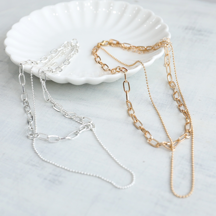 【GROWING RICH】鎖骨にきれいに映える、洗練レイヤード。2連チェーンネックレス