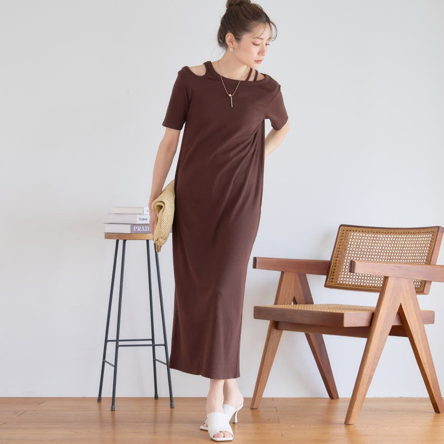 カットアウト リブ カットソーワンピース
