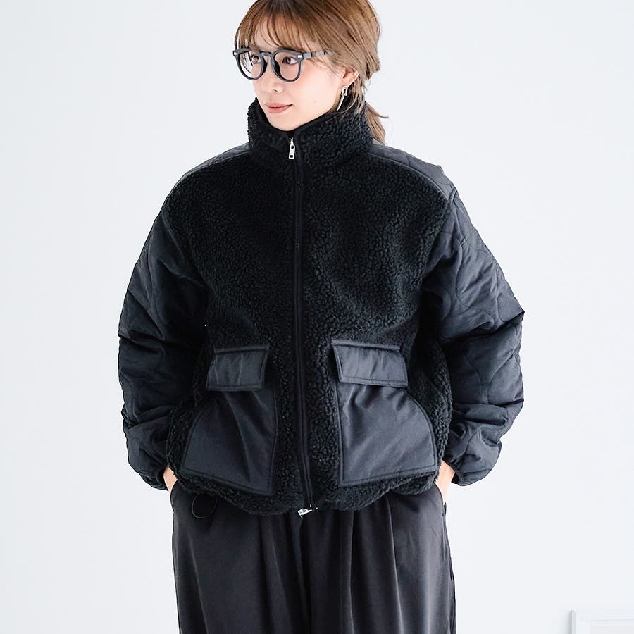 【GROWING RICH】ふわもこボア×キルトでしっかり暖かい。体型カバーも叶うスタンドボアキルティングジャケット(秋冬)