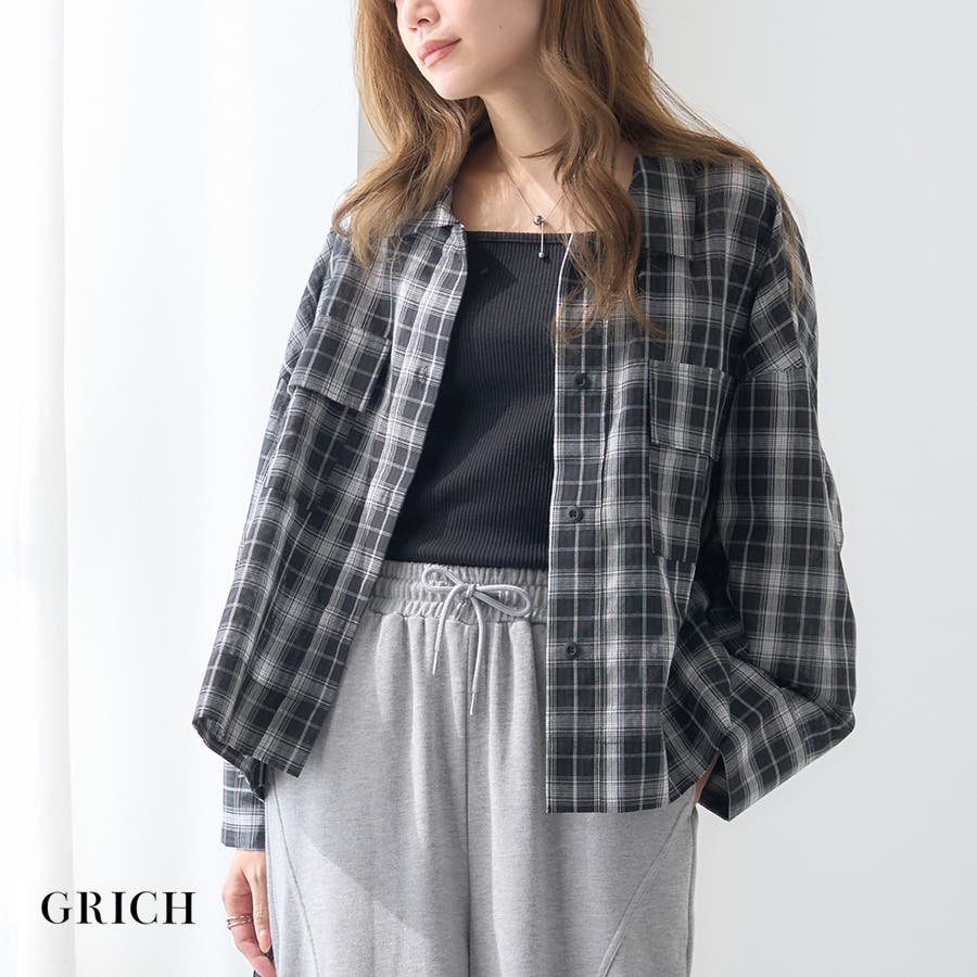 【GROWING RICH】この着丈、コーデしやすい。オーバーサイズなのに華奢見え さらっと羽織れる シアーサッカー チェック シャツ(春夏)