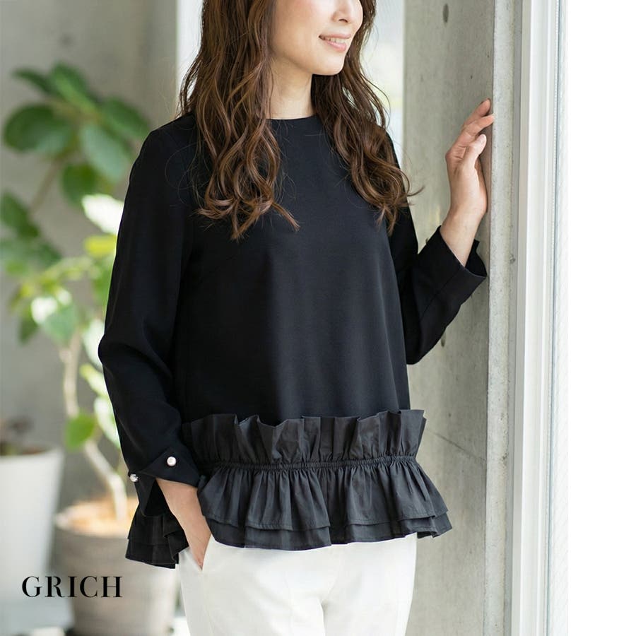 【GROWING RICH】オケージョンやハレの日に。きれいめ大人可愛い 袖口パール 裾フリルプルオーバー(春秋冬)