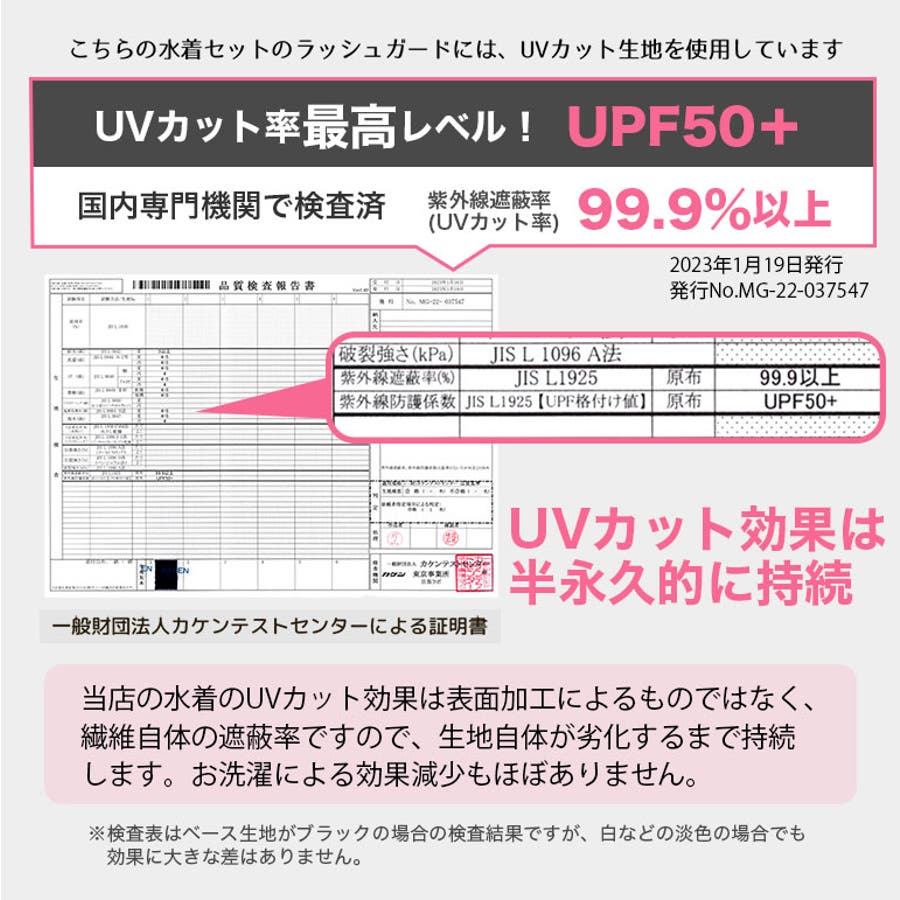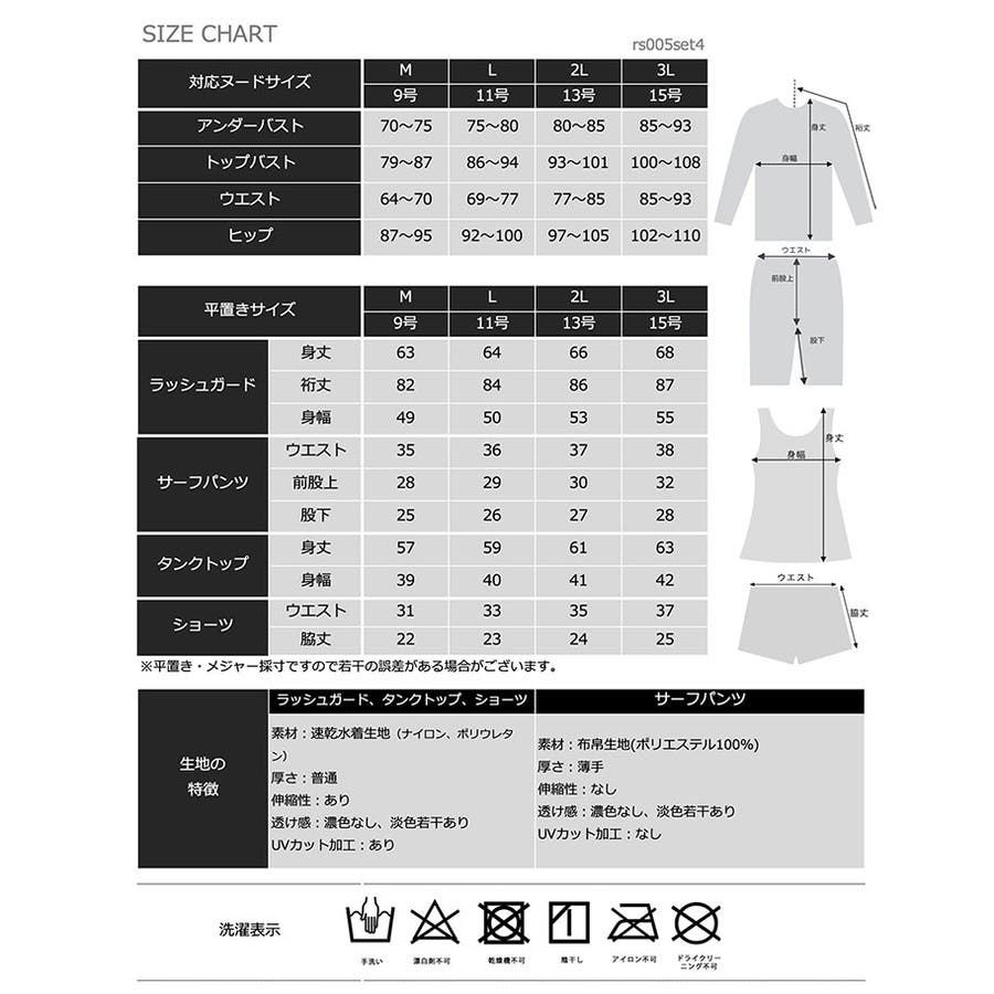 (ラッシュガード・タンクトップ・ショーツがナイロン生地、サーフパンツはポリエステルです。)