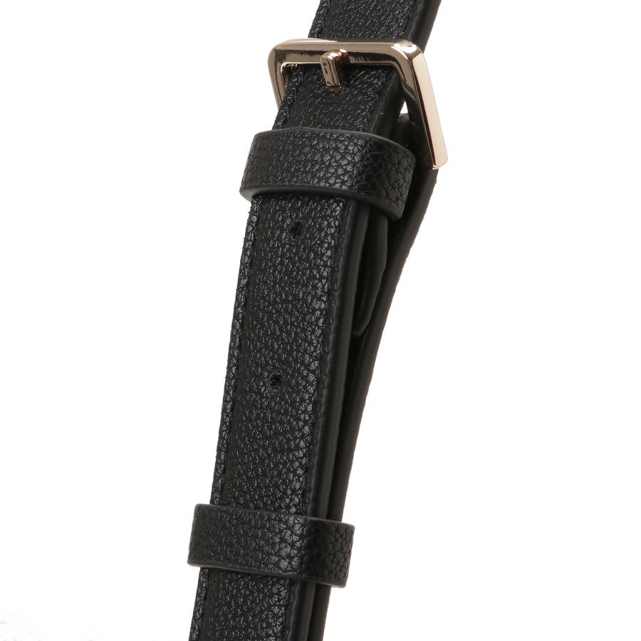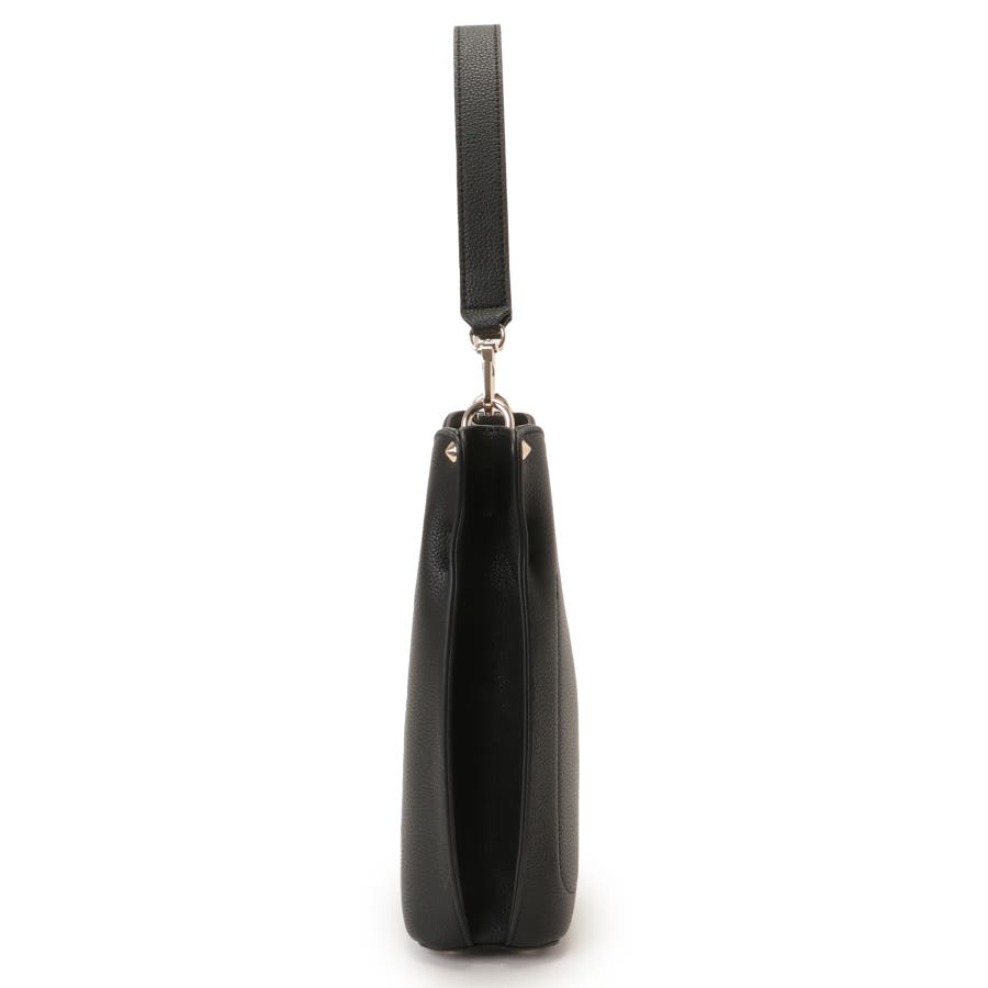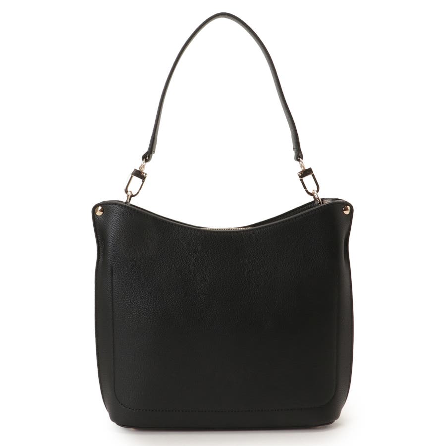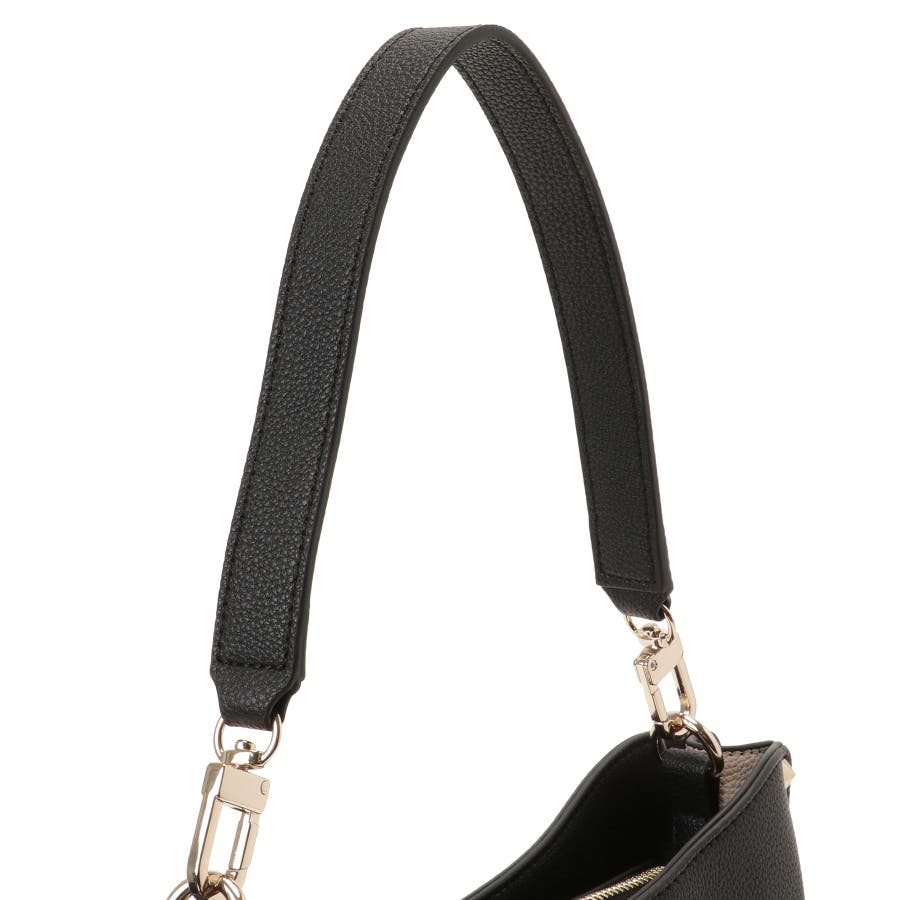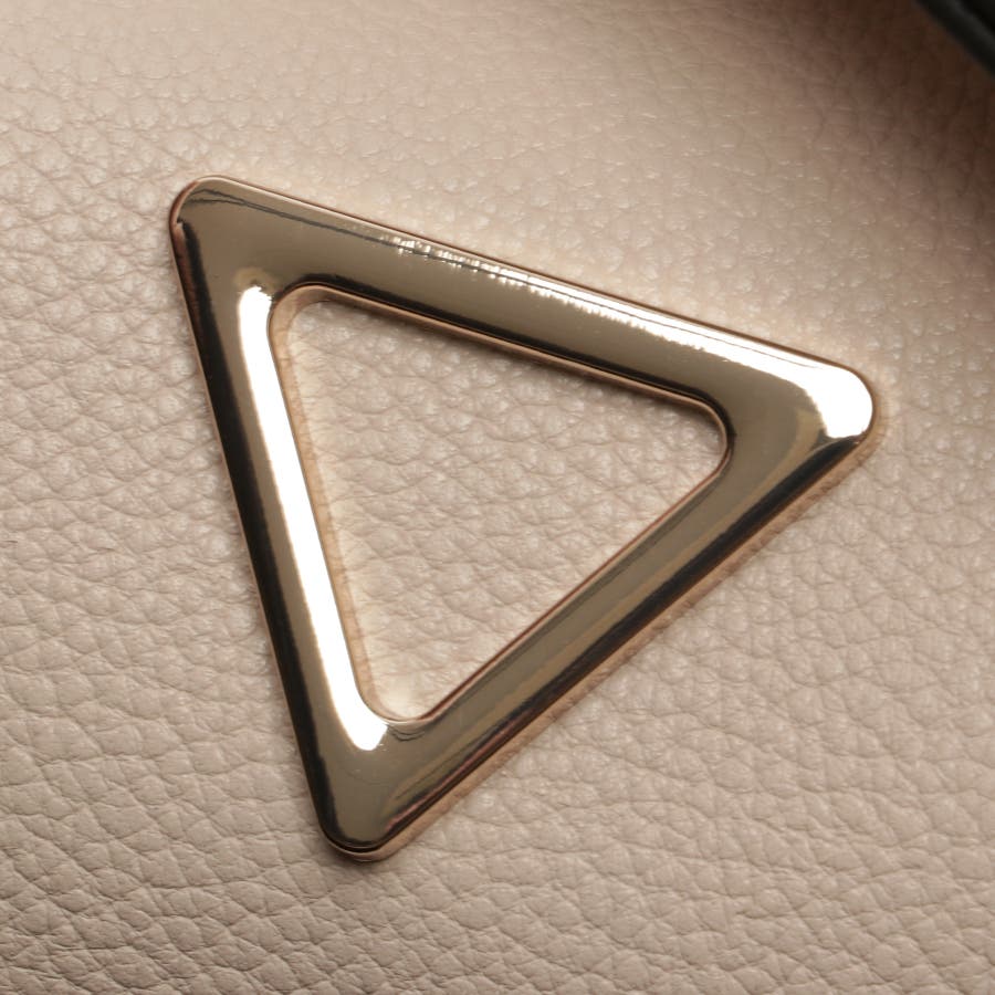 フロントのトライアングルロゴやチャームがアクセントになっている肩掛けバッグ。付属のストラップへ付け替えれば、クロスボディバッグとしても使用できます。滑らかにカーブしたデザインで躍動感と高級感のある印象を与えてくれるアイテムです。大人っぽいコーデに合わせてタウンユース使いはもちろんですが、オフィスカジュアルにもおすすめのベーシックバッグです。