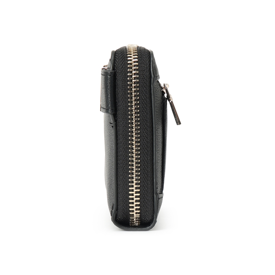 フロントに施されたブランドロゴとメタルパーツが上品さを演出するウォレット。
