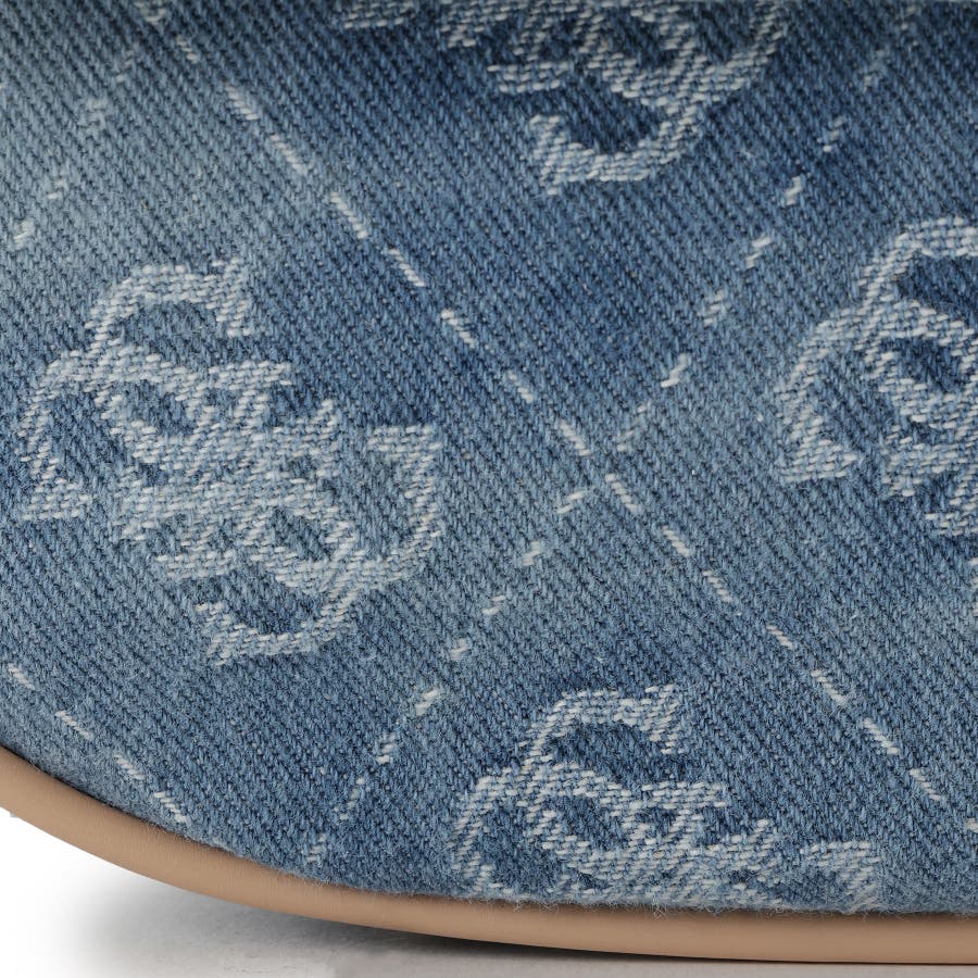 デニム生地風を使用してカジュアルさと高級感をMIXさせたハーフムーンバッグ。