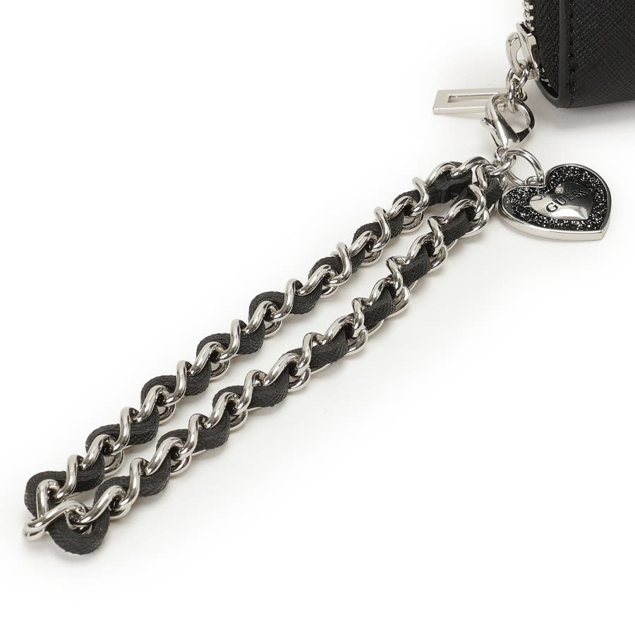 艶やかなロゴプレートとハートチャームが目を引く、華やかさを放つウォレットポーチ。