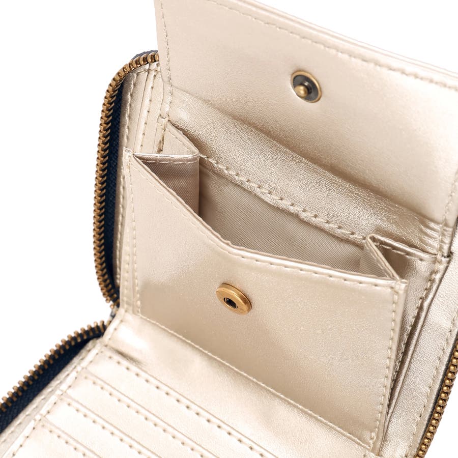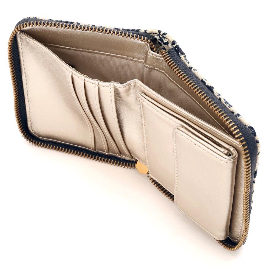オリジナルのモノグラム柄でモダンクラシカルな雰囲気を漂わせるショートウォレット。ラウンドファスナー仕様でコンパクトに持ち運びすることができます。札入れをはじめ、小銭入れやカード収納を備えた機能性も申し分なし。シーンを問わずに愛用できるデザインは、プレゼントにも喜ばれそう。内側カードポケット:3 内側オープンポケット:3 内側ホックポケット:1