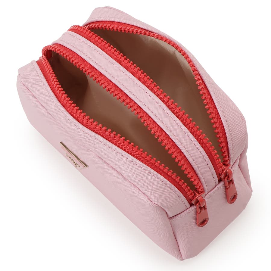 ダブルコンパートメント使用で、収納力抜群のポーチ。