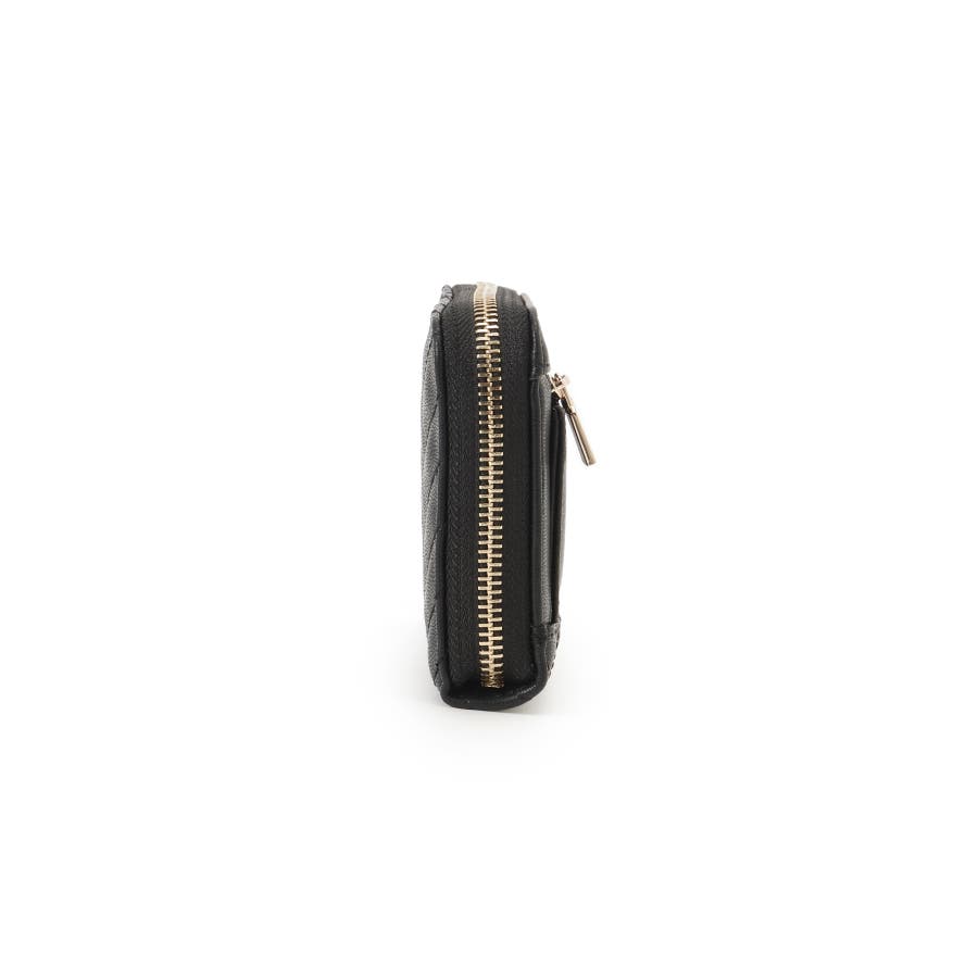 ヘリンボーン柄のキルティングと同系色で統一されたブランドロゴが品よく映えるロングウォレット。