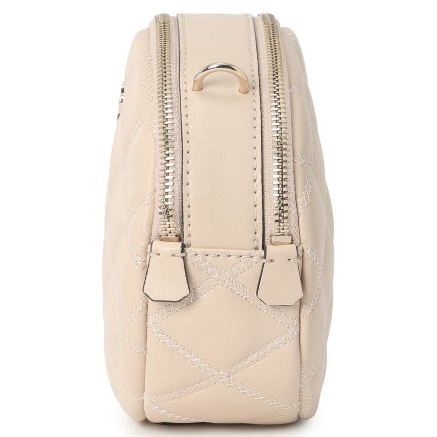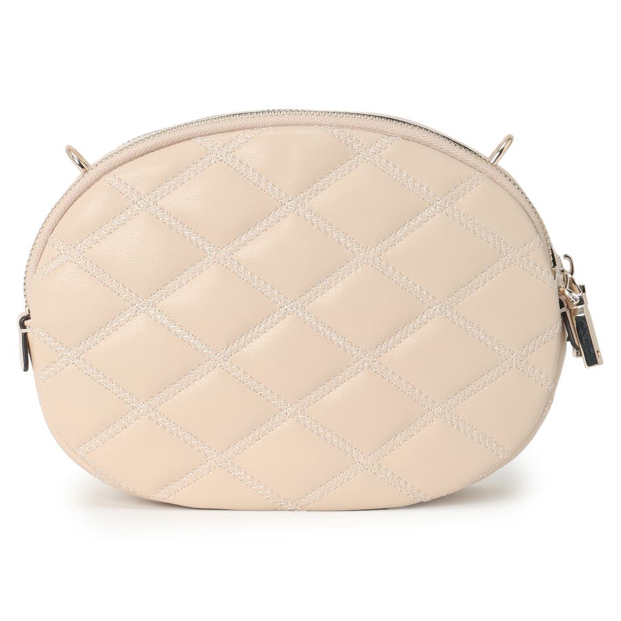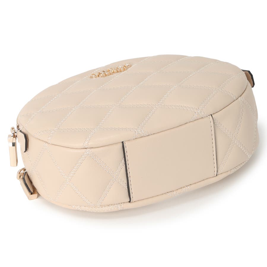 ふっくらとしたキルティングのような生地が品のある印象を与えるクロスボディバッグ。