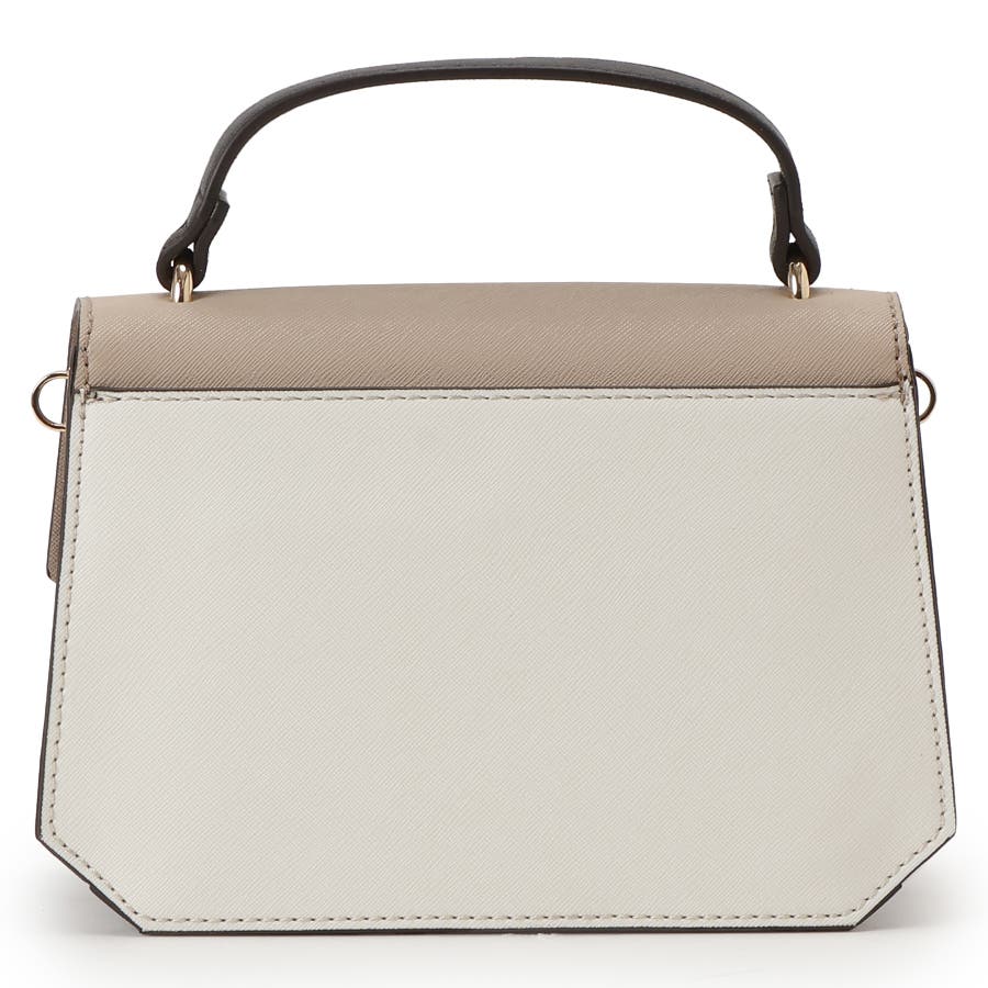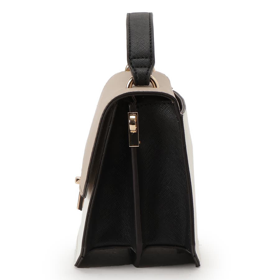 バイカラーの配色がコーデの華やかな印象を与えてくれるハンドバッグ。