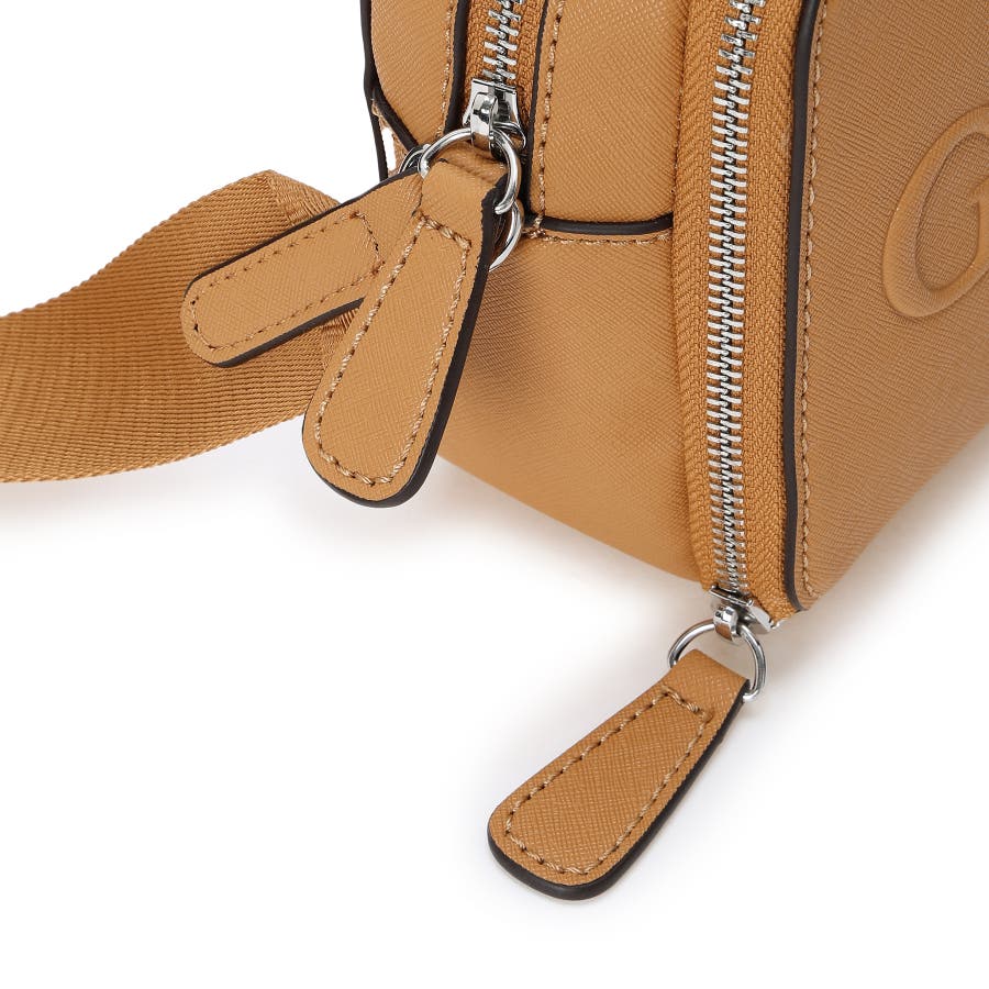 浮かび上がるような型押しのブランドロゴが目を惹くミニクロスボディバッグ。