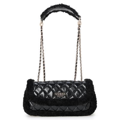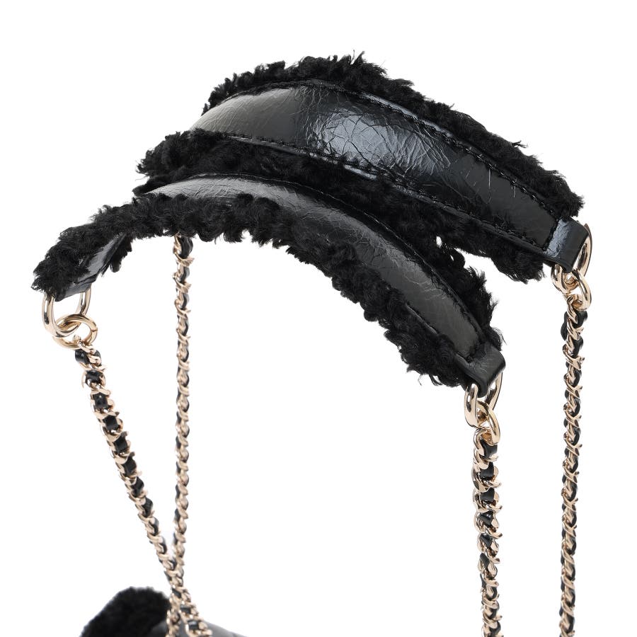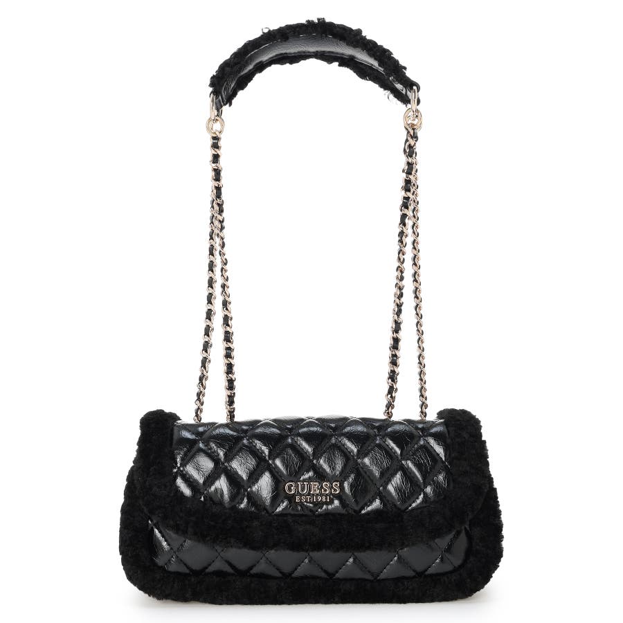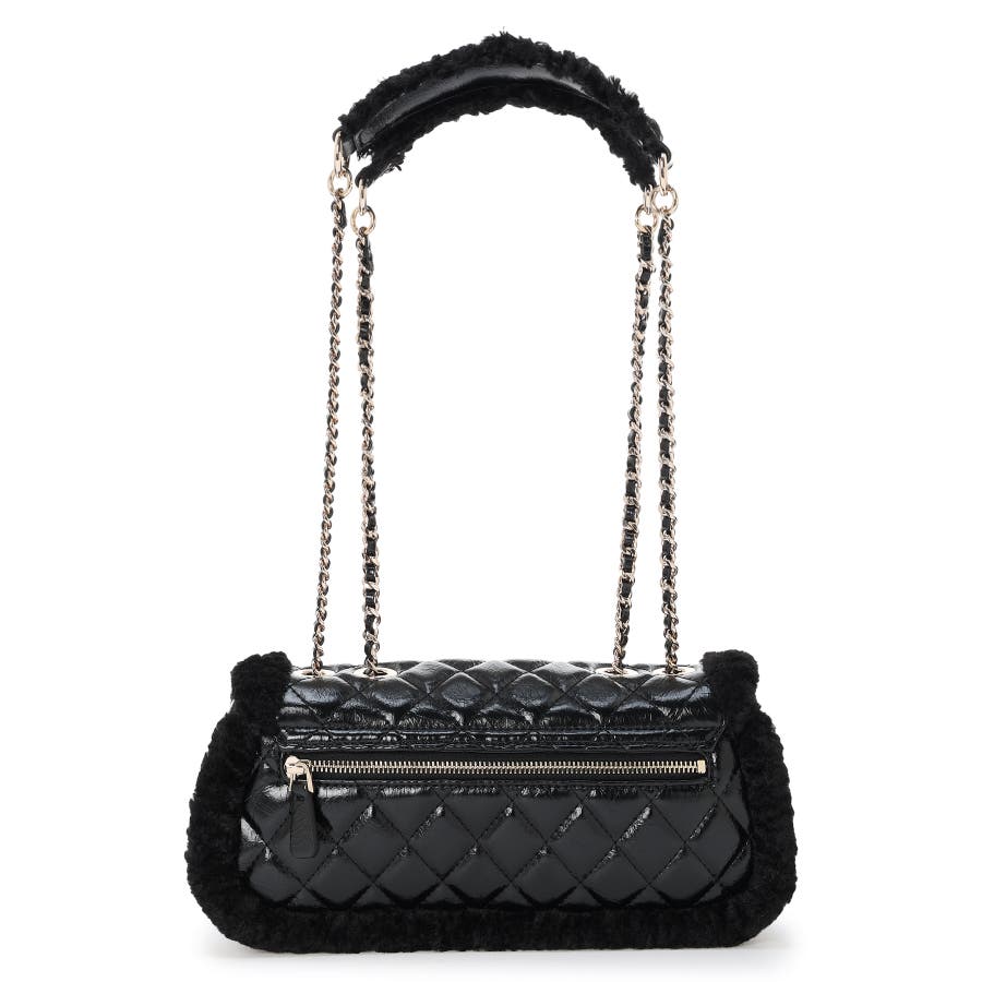 艶やかなキルティング調の質感にファー風の縁取りを添えたクロスボディバッグは、冬の装いに華やぎをもたらします。