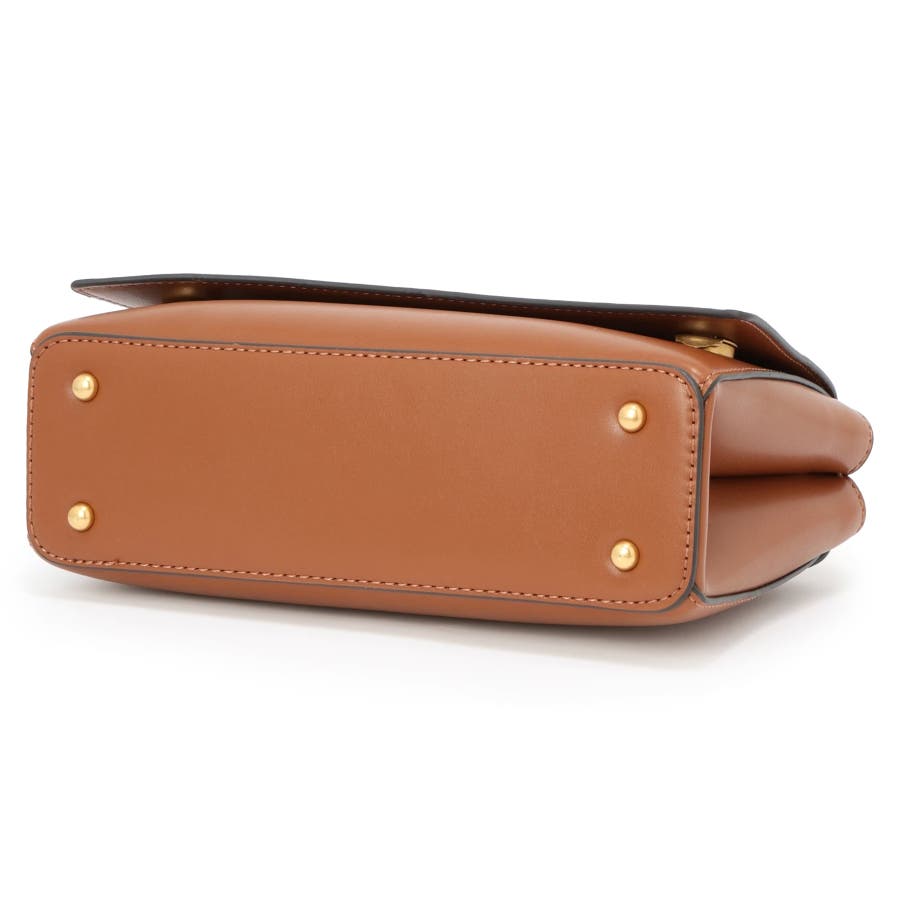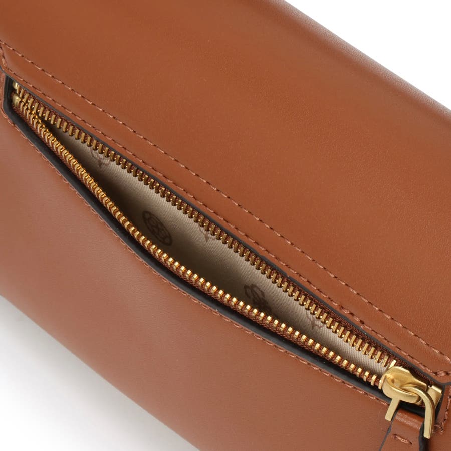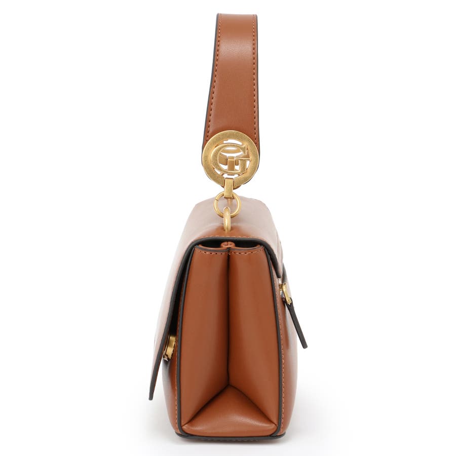 カーブを描くフラップデザインがポイントになったバッグ。イニシャルモチーフが施されたハンドルもポイント。簡単に着脱できるショルダーストラップが付属しており、2WAYのスタイリングが可能。洗練感のあるミニマルなルックスで、オンオフ問わずに愛用いただけるアイテムです。 外側ファスナーポケット:1 内側オープンポケット:6 内側ファスナーポケット:1