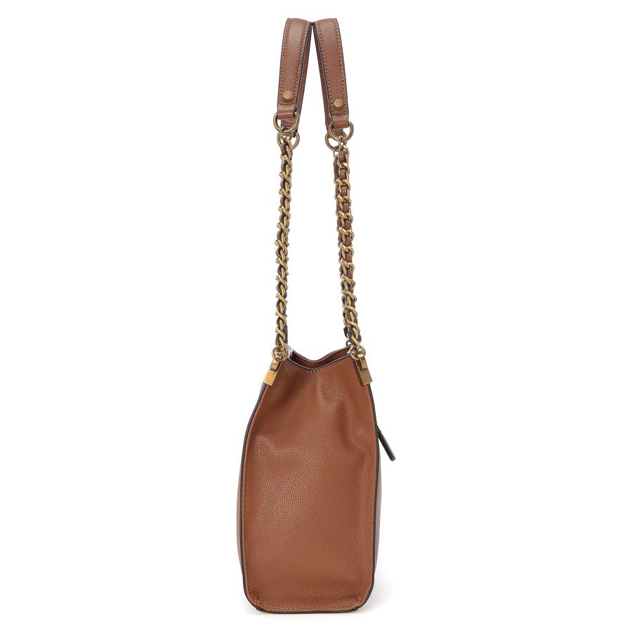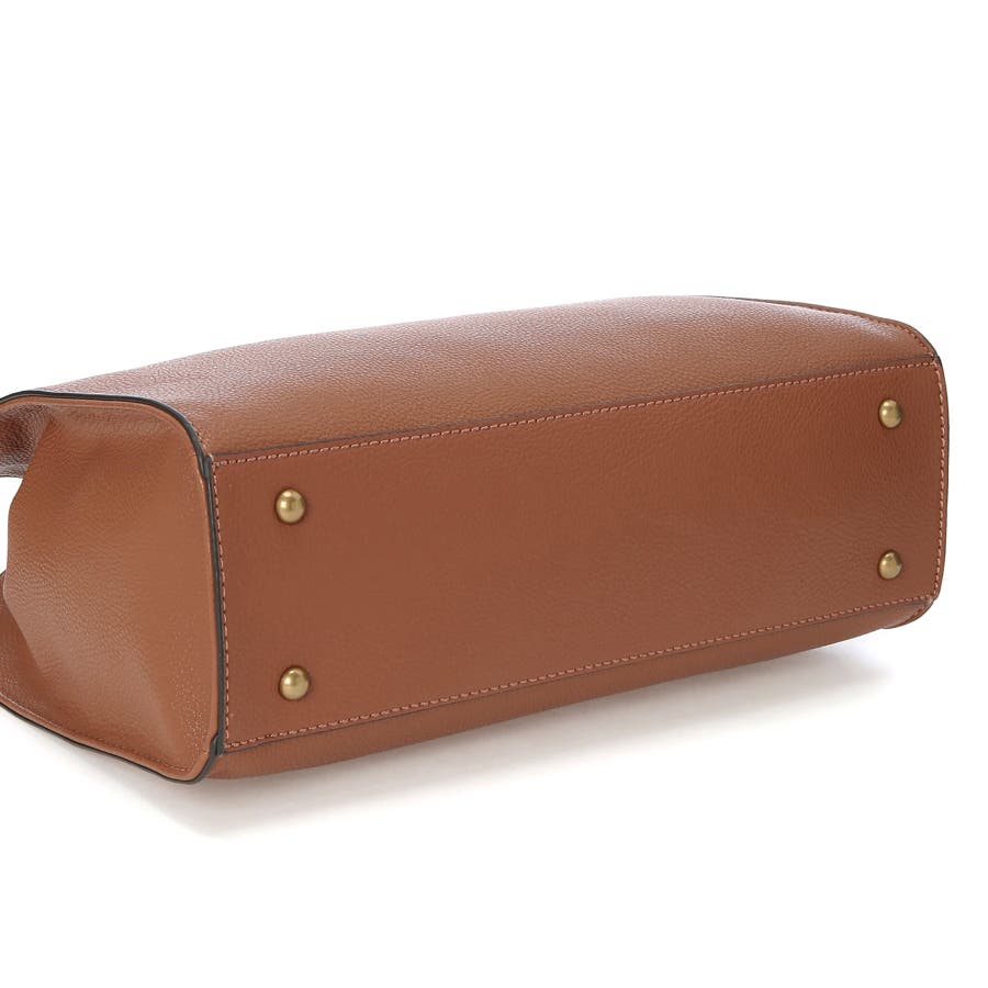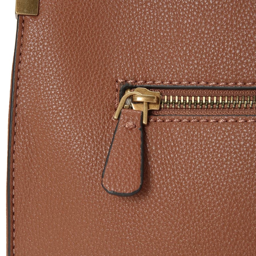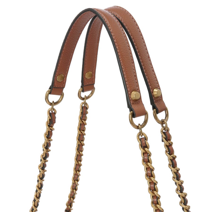 トライアングルモチーフがワンポイントに映えるサッチェルバッグ。異素材ミックスのチェーンショルダー紐もモダンなアクセントをプラスします。かっちりとしたスクエアフォルムも洗練ムードを漂わせます。マチ幅があるので収納もしやすく、ファスナーポケットを備えているのも便利なポイント。オンオフ問わず、幅広いシーンに活躍してくれるアイテムです。 外側ファスナーポケット:1 内側オープンポケット:2 内側ファスナーポケット:1