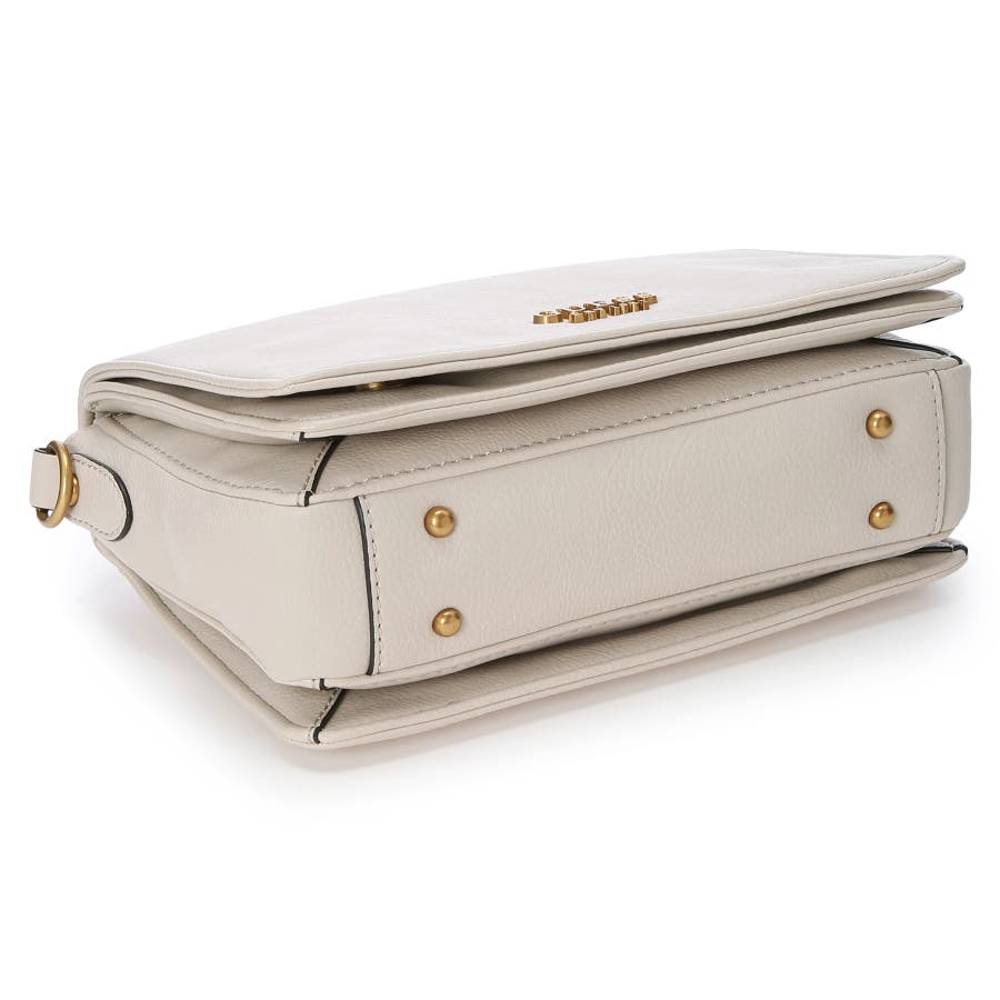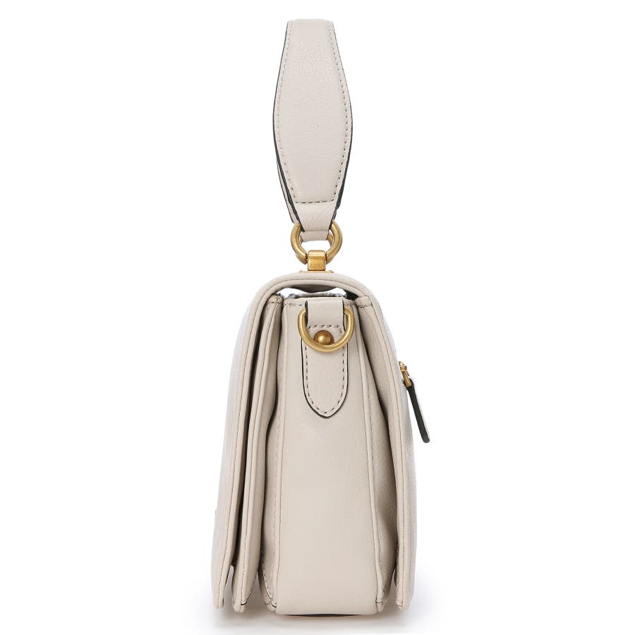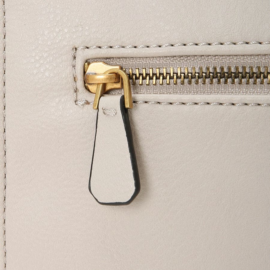 フロントのブランドロゴがさりげないアクセントになるバッグ。ショルダーストラップを付ければななめ掛けとしてもお使いいただけます。背面にはファスナー付きポケットを施し、収納力に優れているのもポイント。シンプルなデザインであらゆるコーディネートに馴染みやすいアイテムです。 外側ファスナーポケット:1 内側オープンポケット:2 内側ファスナーポケット:1