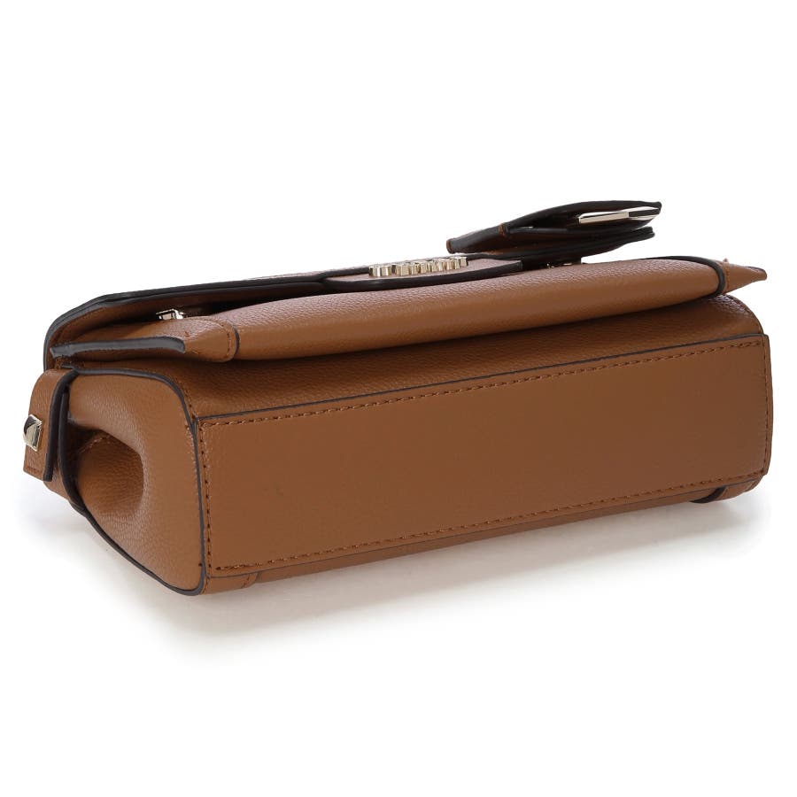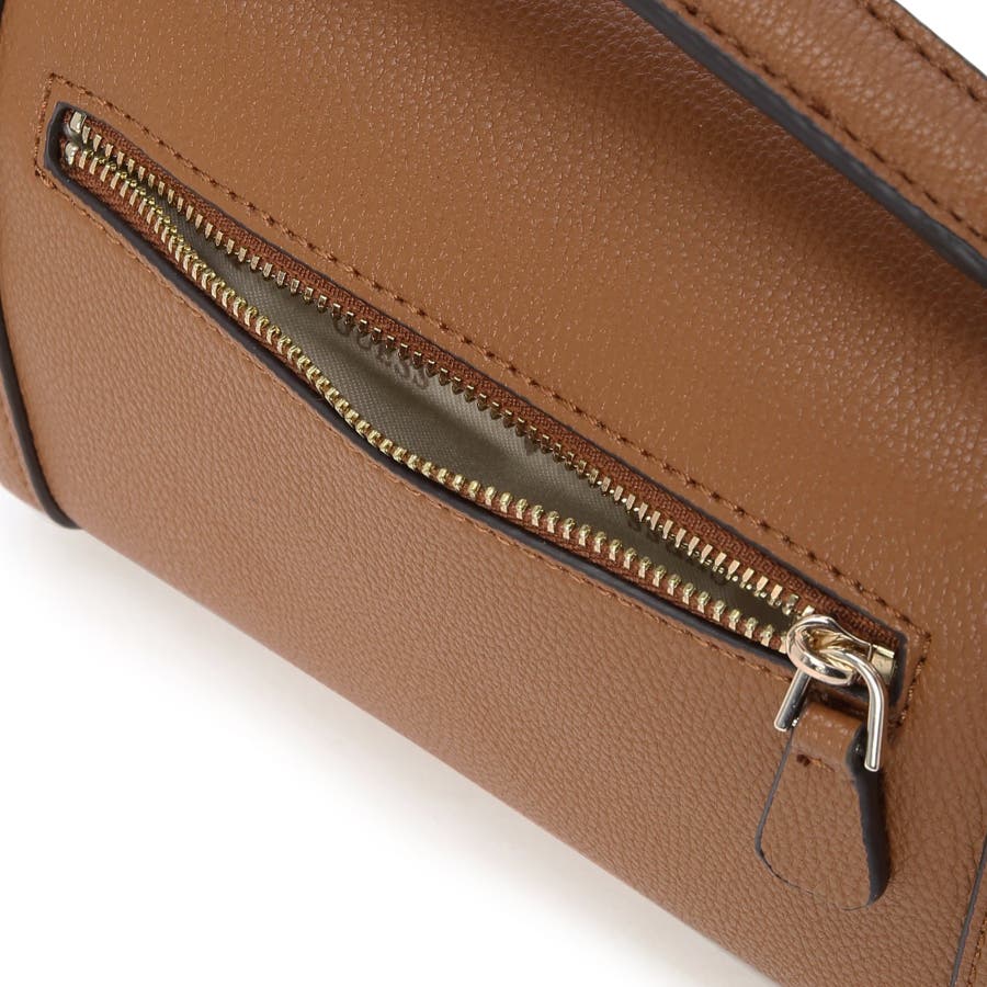 クラシカルな雰囲気漂うトップハンドル付きのフラップバッグ。揺れるチャームも視線を集めるアクセントに。コンパクトなサイズながらもフロントポケットや仕切りファスナー収納など、小物もすっきりと整理できる機能性も嬉しいポイントです。2WAYのスタイリングが楽しめるショルダーストラップ付き。デートやパーティ、旅行などの様々なシーンにも活躍してくれるアイテムです。 外側ファスナーポケット:1 内側オープンポケット:4 内側ファスナーポケット:2