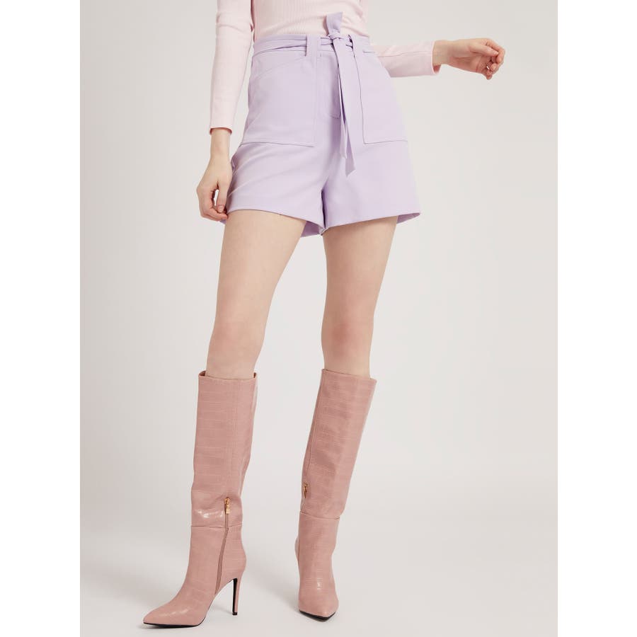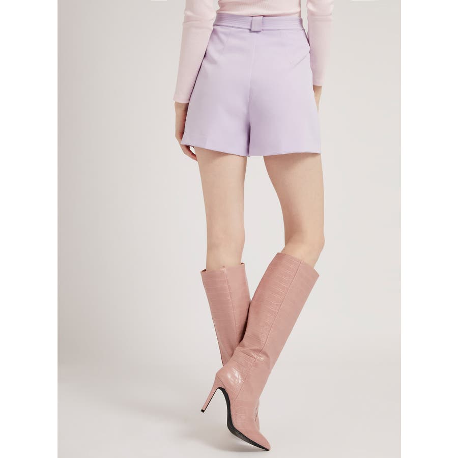 ヴィンテージ風のAラインシルエットでデザインされたショーツパンツ。さりげなく美脚に仕上がる一枚です。カジュアルながら裾広がりのシルエットでほんのりガーリームードもアップし、トップスによってカジュアルからフェミニンまで幅広く着回せます。タイベルト付き。