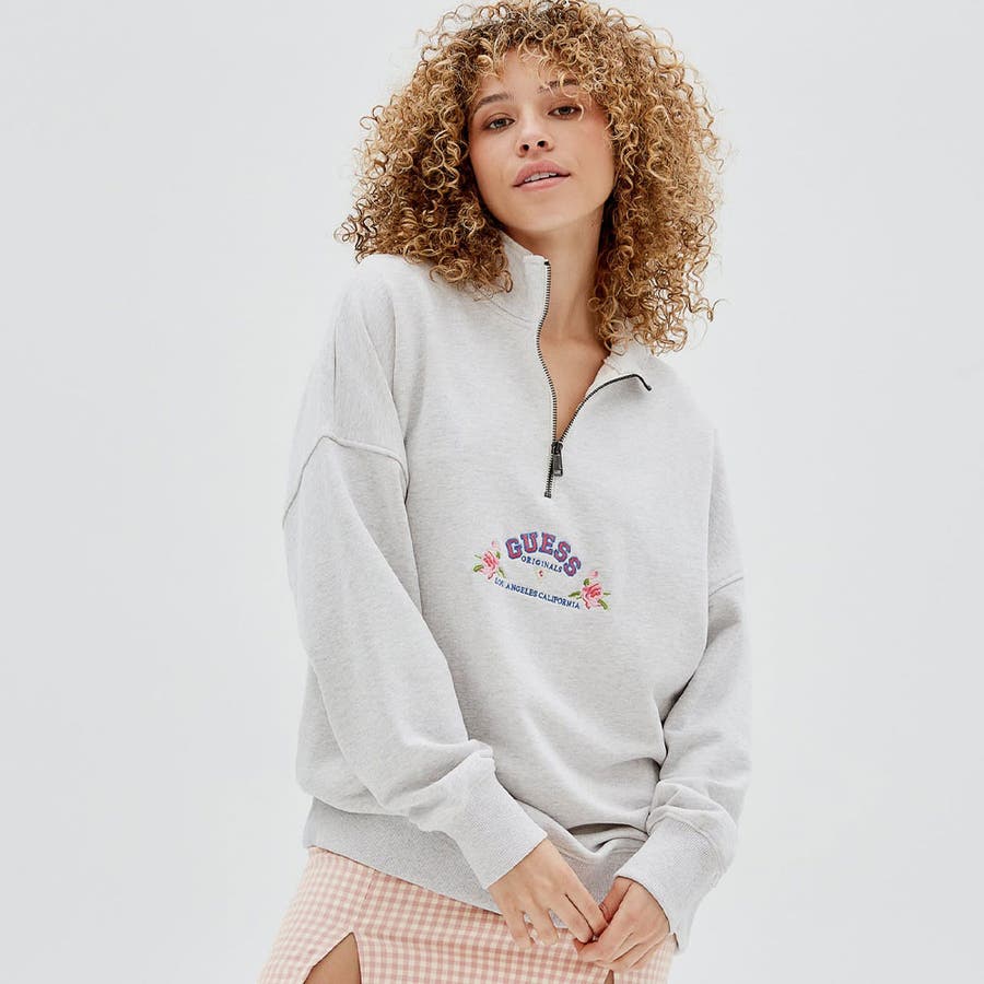 ハーフジップでスポーティライクに仕上げたモックネックスウェット。フラワーモチーフを組み合わせたロゴ刺繍が目を惹く鮮やかなアクセントに。さらりとした肌触りの良い裏毛素材で着心地も快適。ゆったりとしたオーバーサイズシルエットで気負いなくスタイリングでき、リラックスして着用できるのも魅力です。