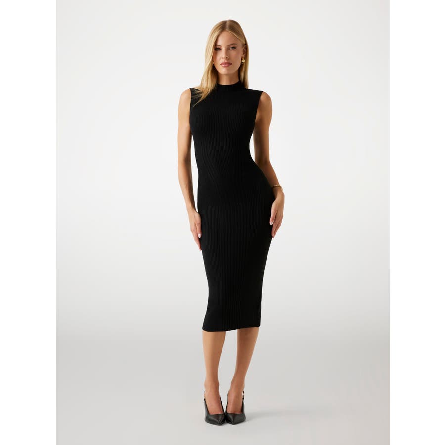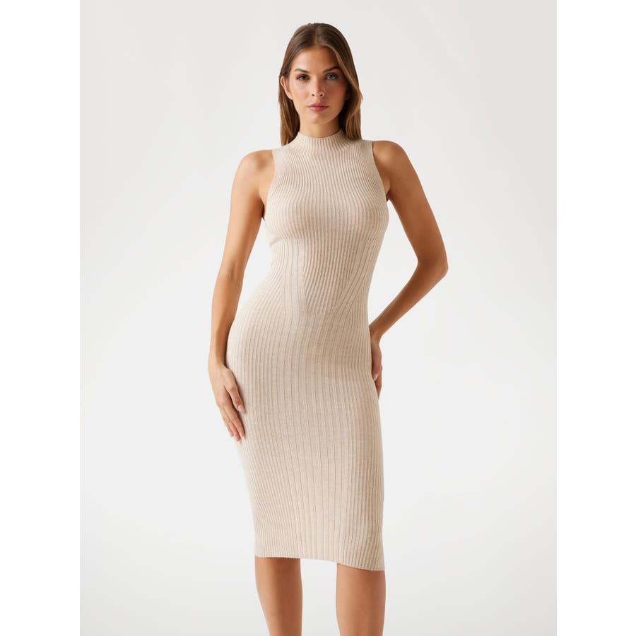 身体のラインに沿って美しくフィットするシルエットに、ハイネックデザインがモードな印象をプラス。