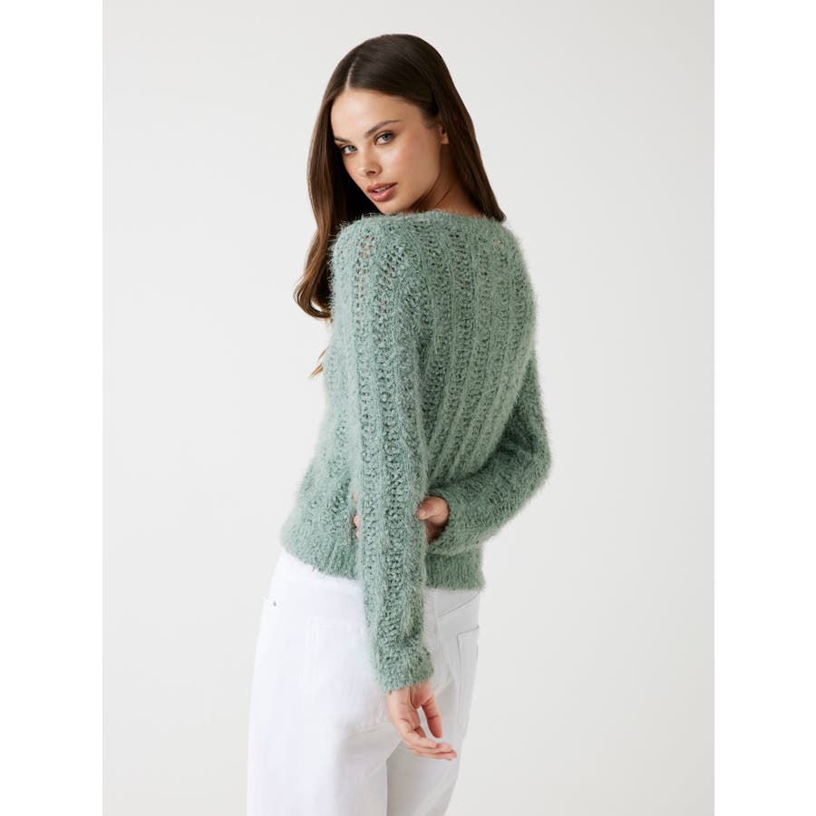 繊細な透かし編みと、ほんのり起毛感のある表面が柔らかな女性らしさを演出します。