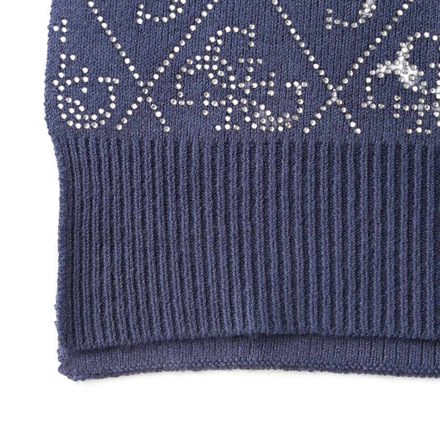 ブランドイニシャルで構成されたラインストーンのロゴが煌びやかな印象を与えるスカーフ。