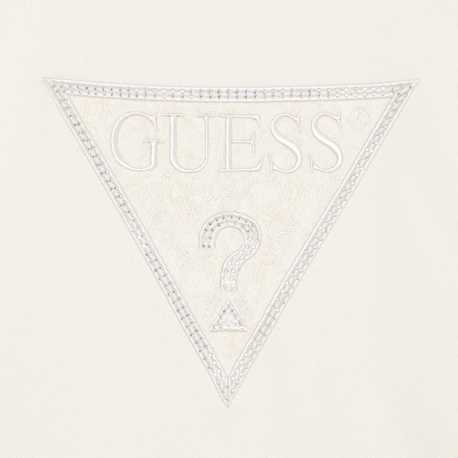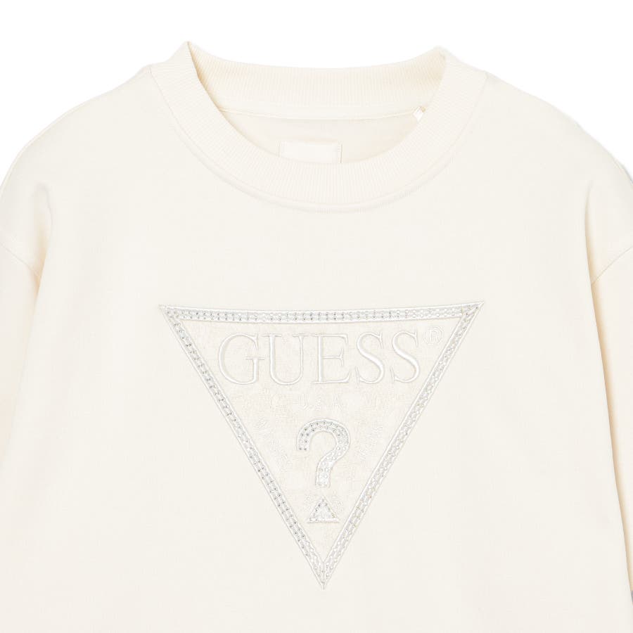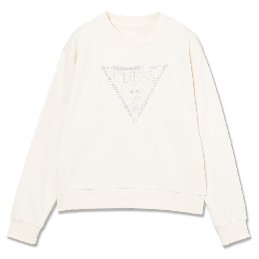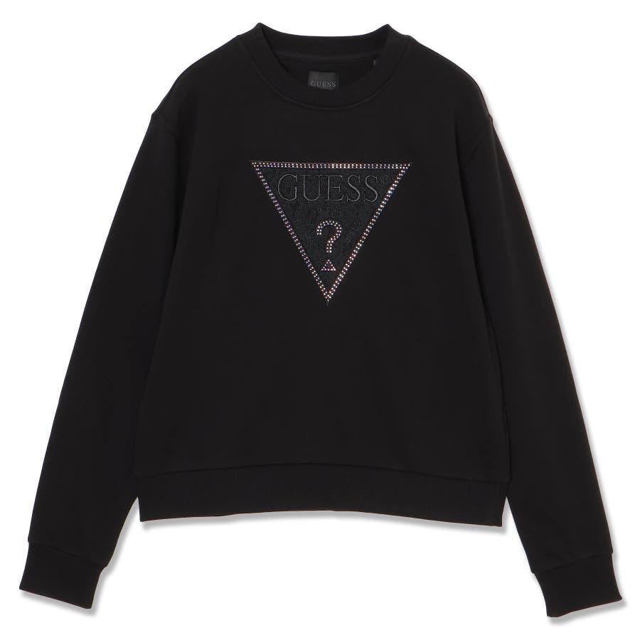 GUESSの象徴であるトライアングルロゴを、繊細な装飾で施したスウェットプルオーバー。