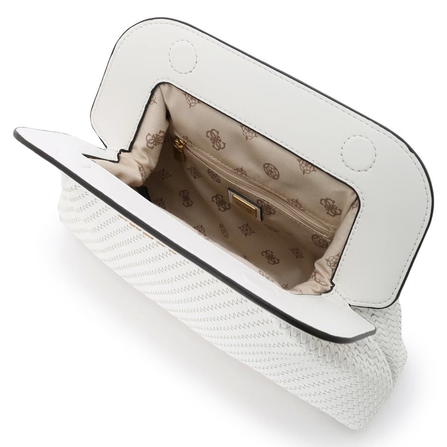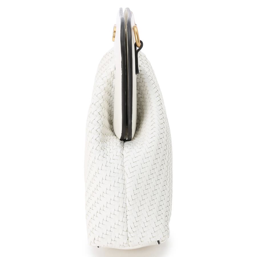 丁寧に編み込まれた上品なデザインのフレームクラッチバッグ。メタルロゴのワンポイントもアクセントをプラス。がま口のように大きく間口が開くので、荷物の出し入れも楽々です。小物の整理がしやすい内ポケット付き。ショルダーストラップが付属しており、2WAYのスタイリングが楽しめるアイテムです。内側オープンポケット:3 内側ファスナーポケット:1