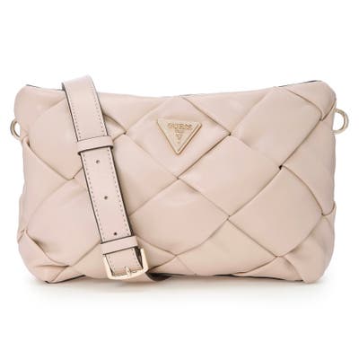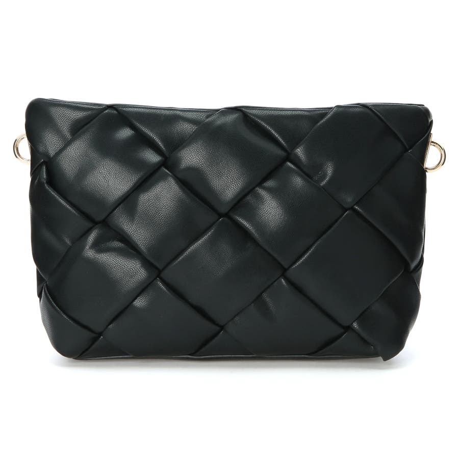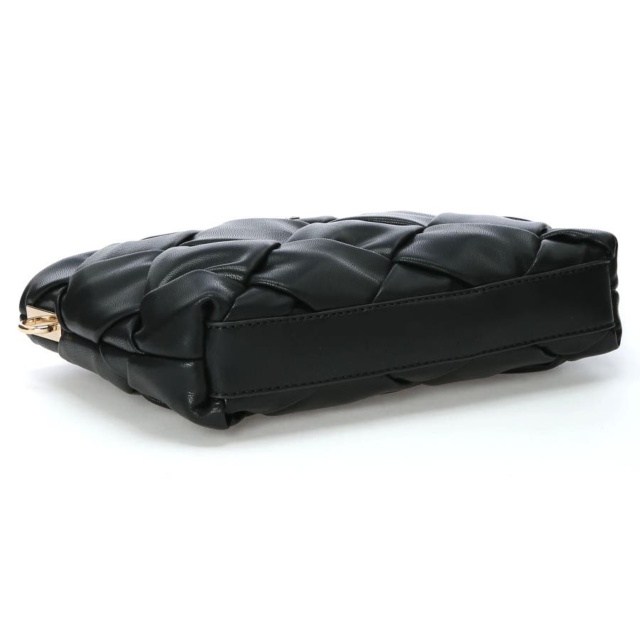 ふっくらとしたレザー素材を編み込んだスタイリッシュなデザインのクロスボディバッグ。トライアングルモチーフのワンポイントもアクセントをプラス。内側には複数ポケットを備え、小物もバラつかずにすっきりと整理することができます。デートやパーティなどのシーンから日常使いにと、オンオフ問わずに活躍してくれるアイテムです。 内側ファスナーポケット:1 内側オープンポケット:3