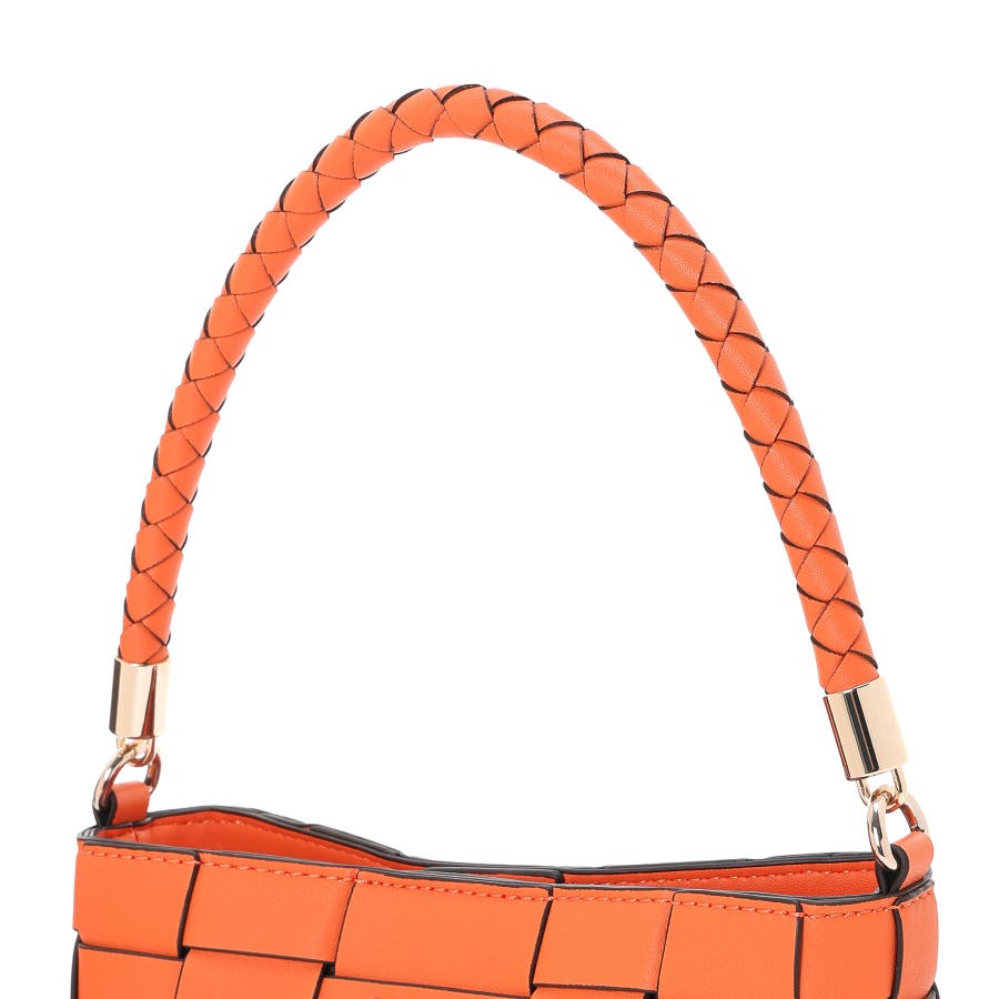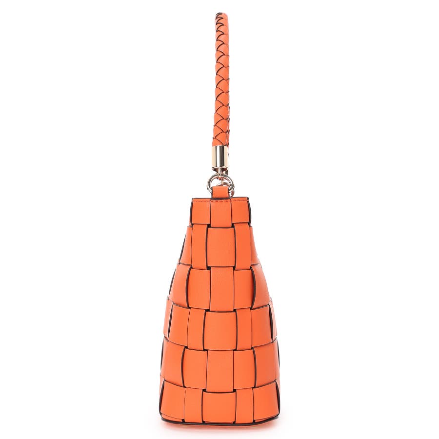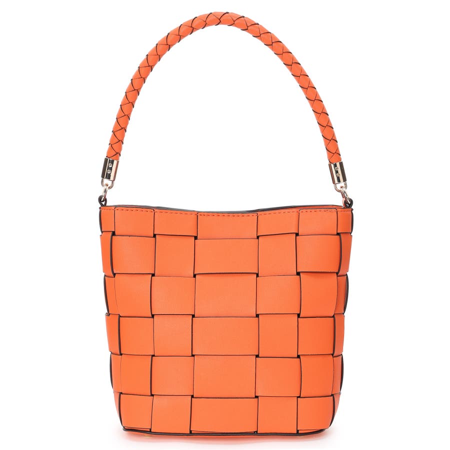 編み込みデザインがアクセントに映えるバケットバッグ。