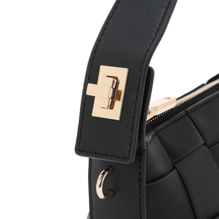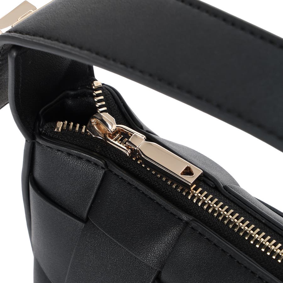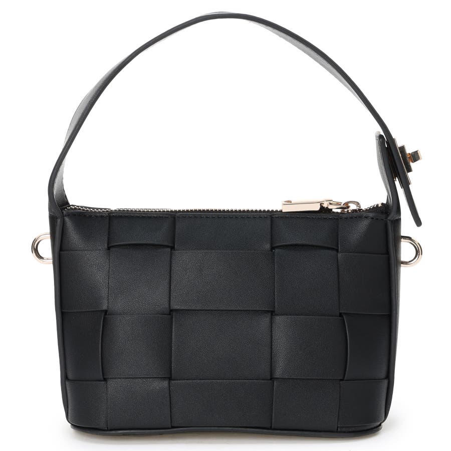 ワイドな編み込みデザインがアクセントに映えるミニバッグ。