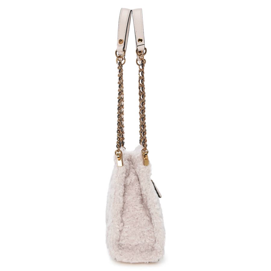 もこもことしたファーが装いを華やかに演出するサッチェルバッグ。トライアングルモチーフのワンポイントもアイコニックなデザイン。異素材ミックスのチェーンショルダー紐もモダンなアクセントをプラスします。マチ幅があるので収納もしやすく、ファスナーポケットを備えているのも便利なポイント。デートやパーティなどの幅広いシーンにも活躍してくれるアイテムです。 外側ファスナーポケット:1 内側オープンポケット:2 内側ファスナーポケット:1