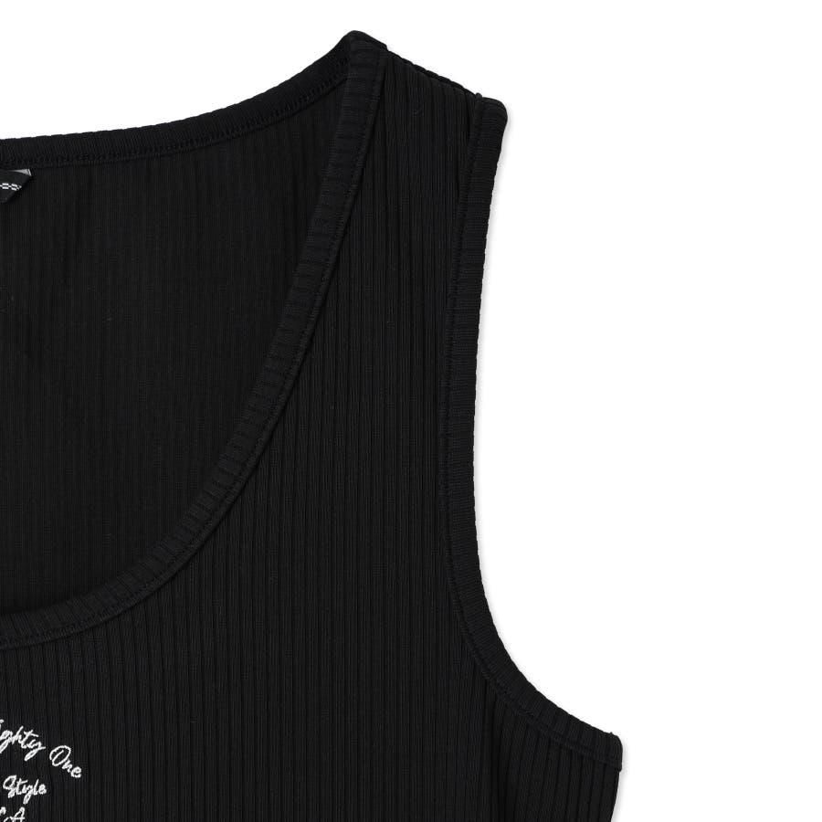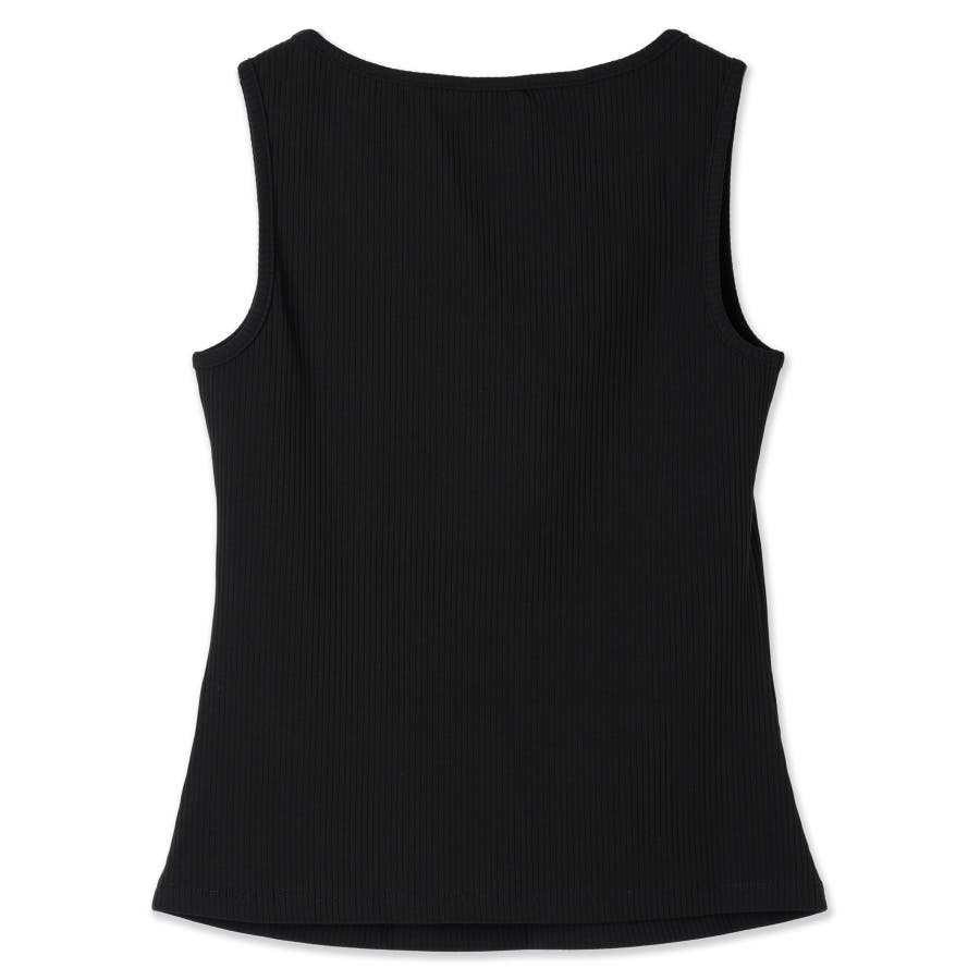 フロントのロゴ刺しゅうがさりげないアクセントになるタンクトップ。