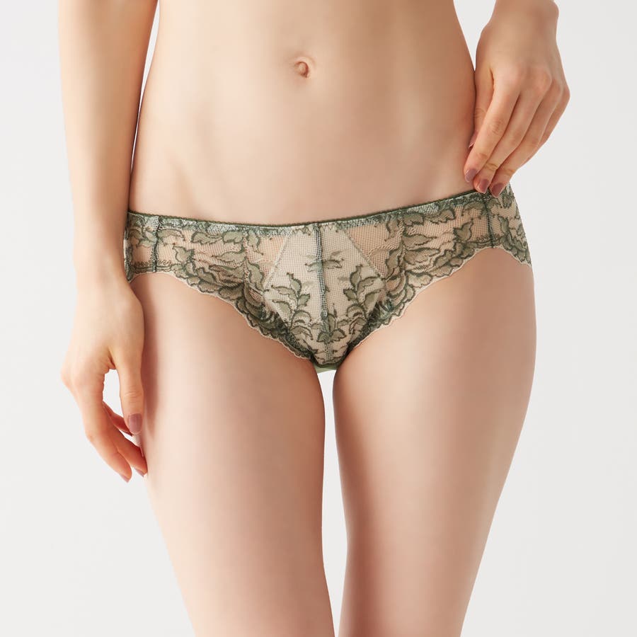 ・レース柄は「つる植物のアイビー」をモチーフとした優しいボタニカル柄。配色によっては羽根にも見えるためエアリーな印象に。