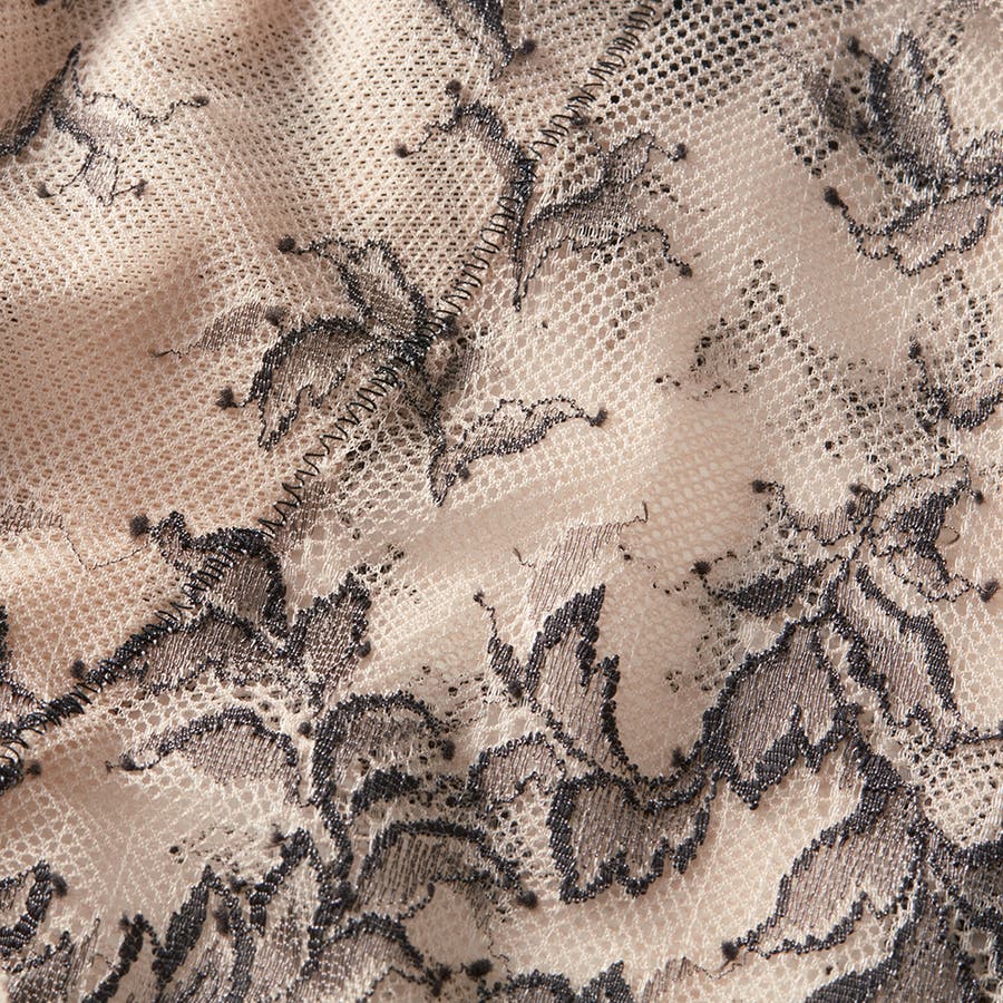 ・リバーレース調で繊細な透け感があり、柄糸がしっかり浮き出るレースを採用。シルクアミノ酸加工で柔らかな肌触りです。