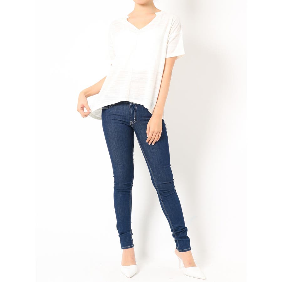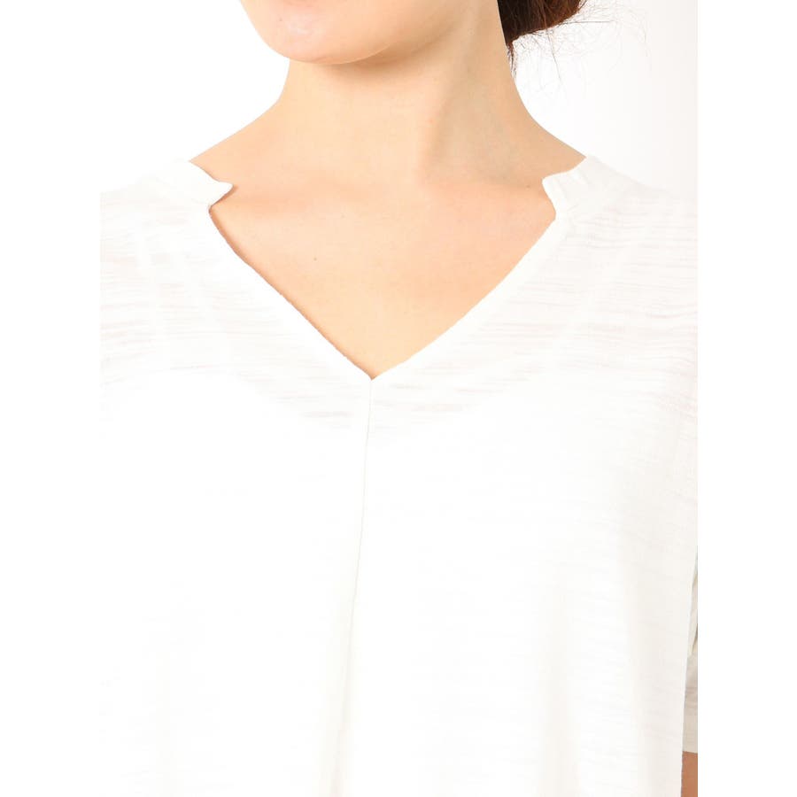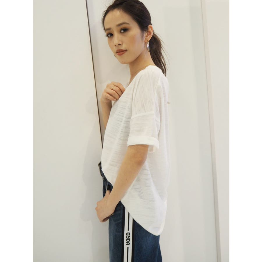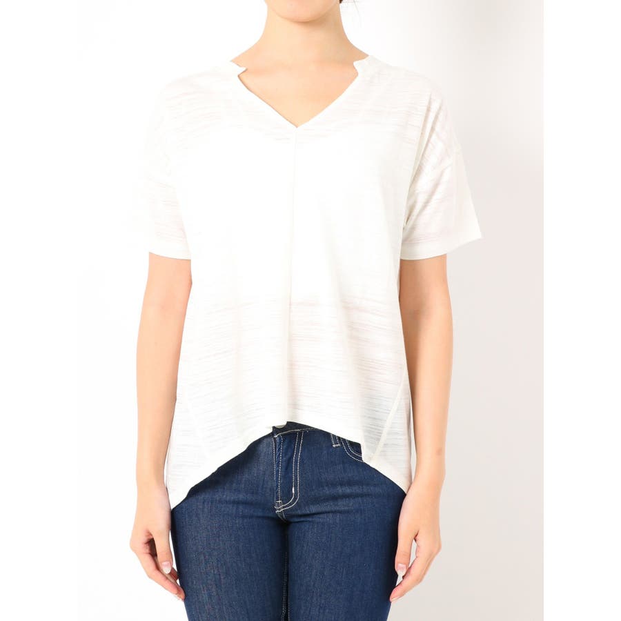 VネックデザインスラブTシャツ