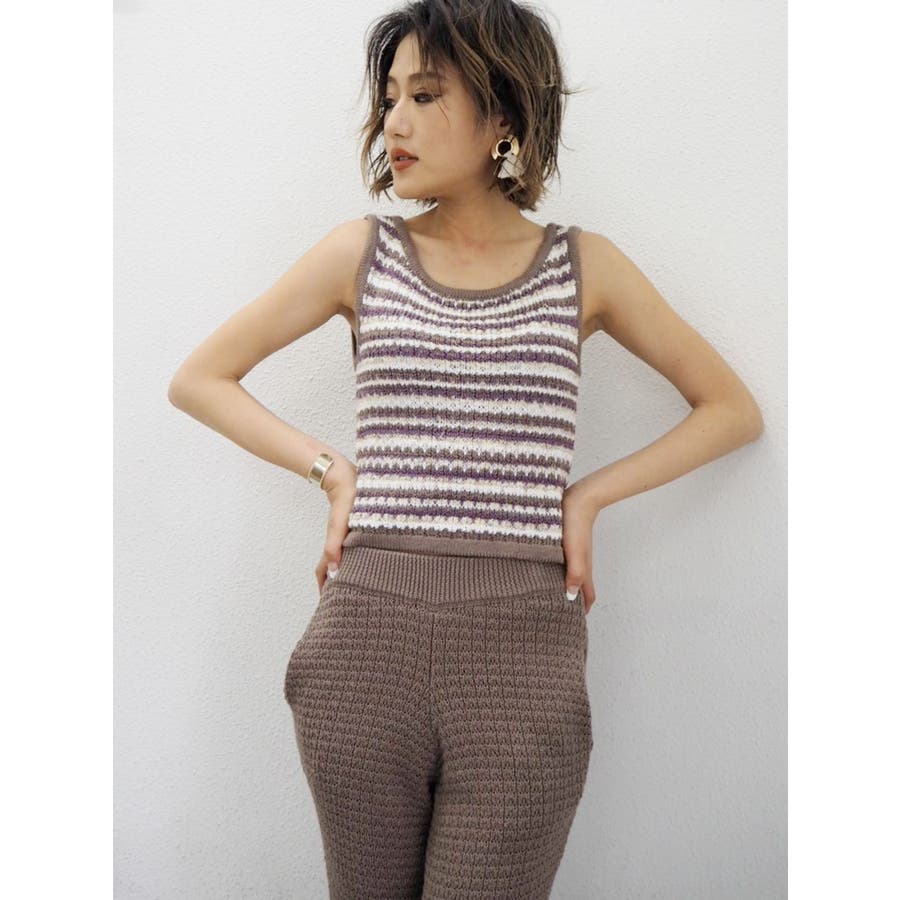様々なカラーの糸をミックスさせて編み上げたニットタンクです。セットアップで着用できるニットパンツも用意しています。 ニットワイドパンツ / 071930715101