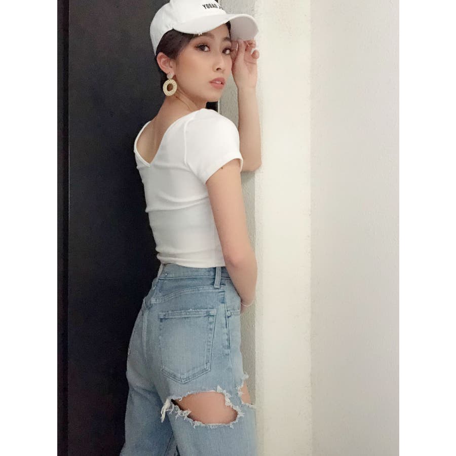 GYDAで毎年人気のモデルです。前後どちらでも着用できる2WAYタイプのショートTシャツです。フロント部分のスピンドルがポイントになっています。