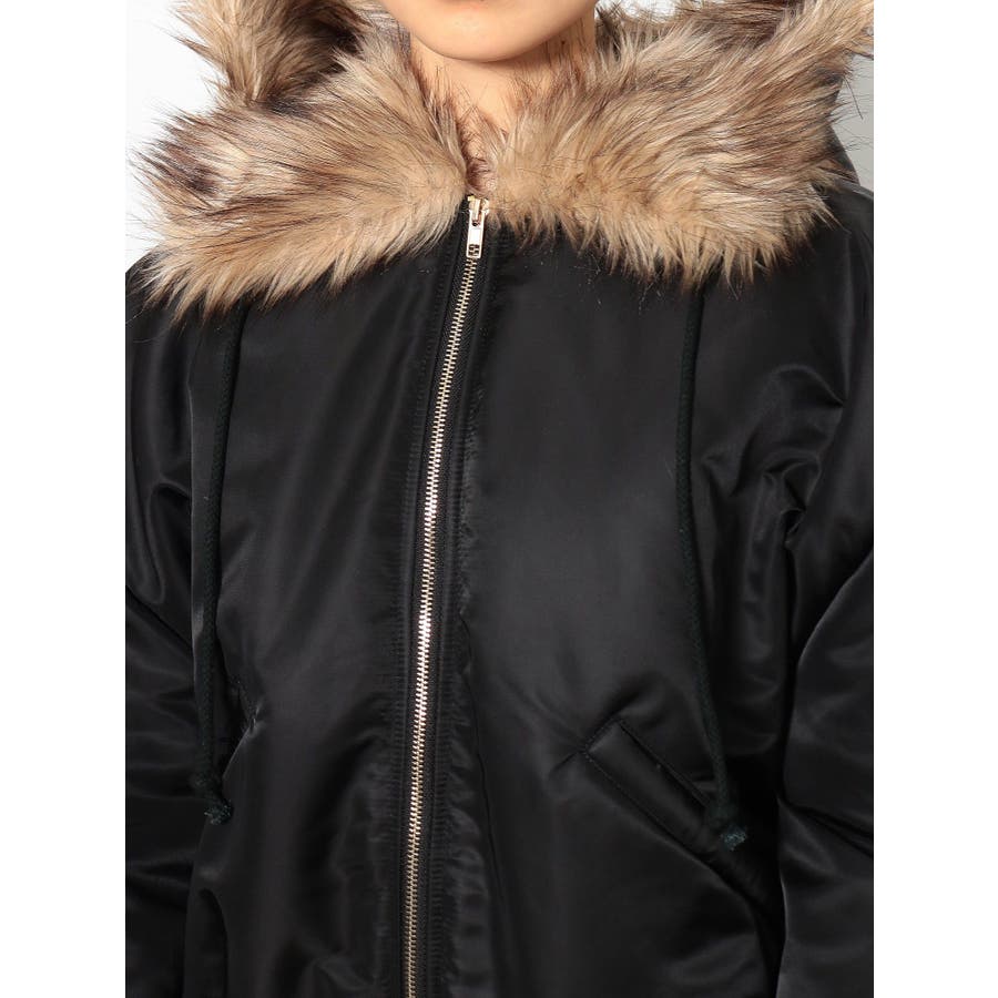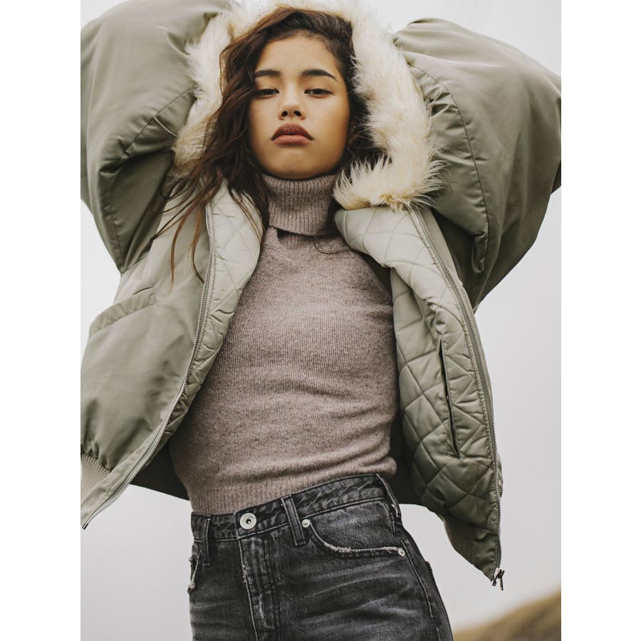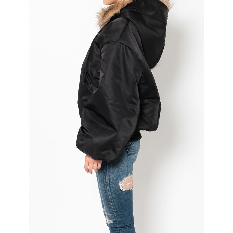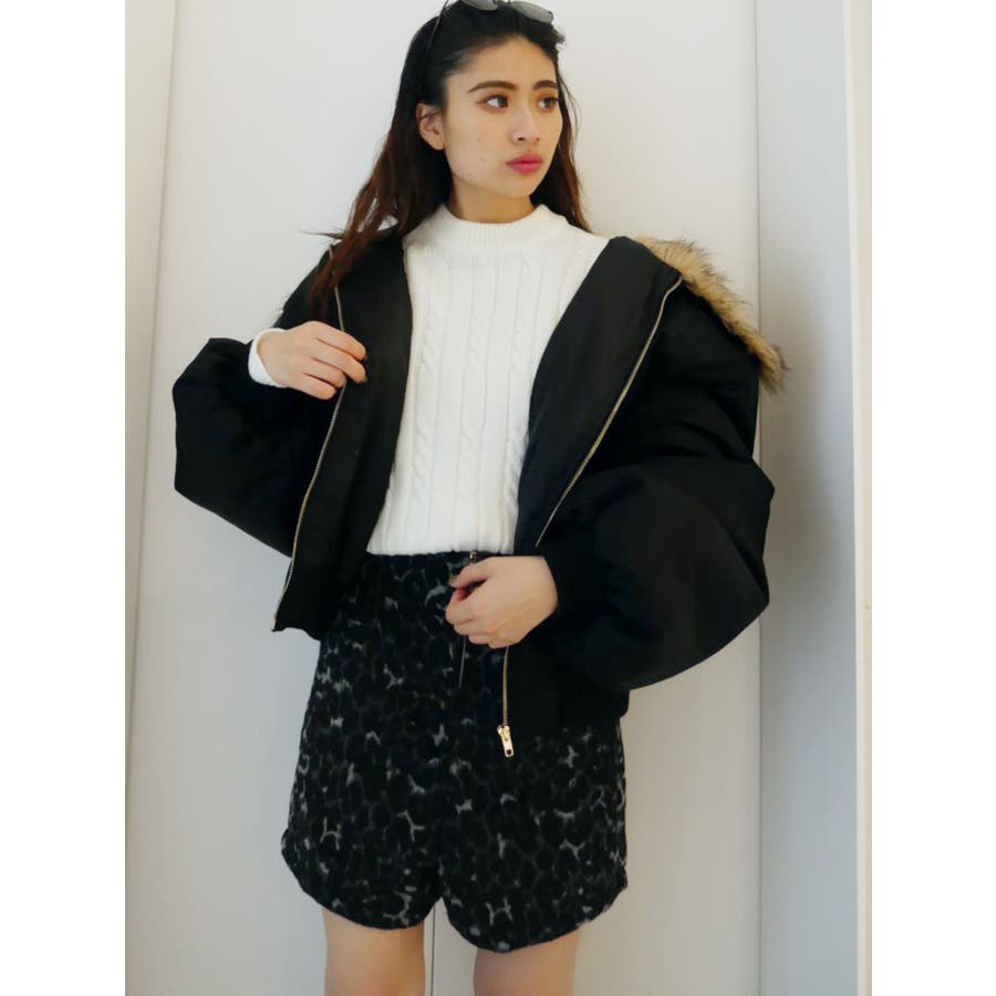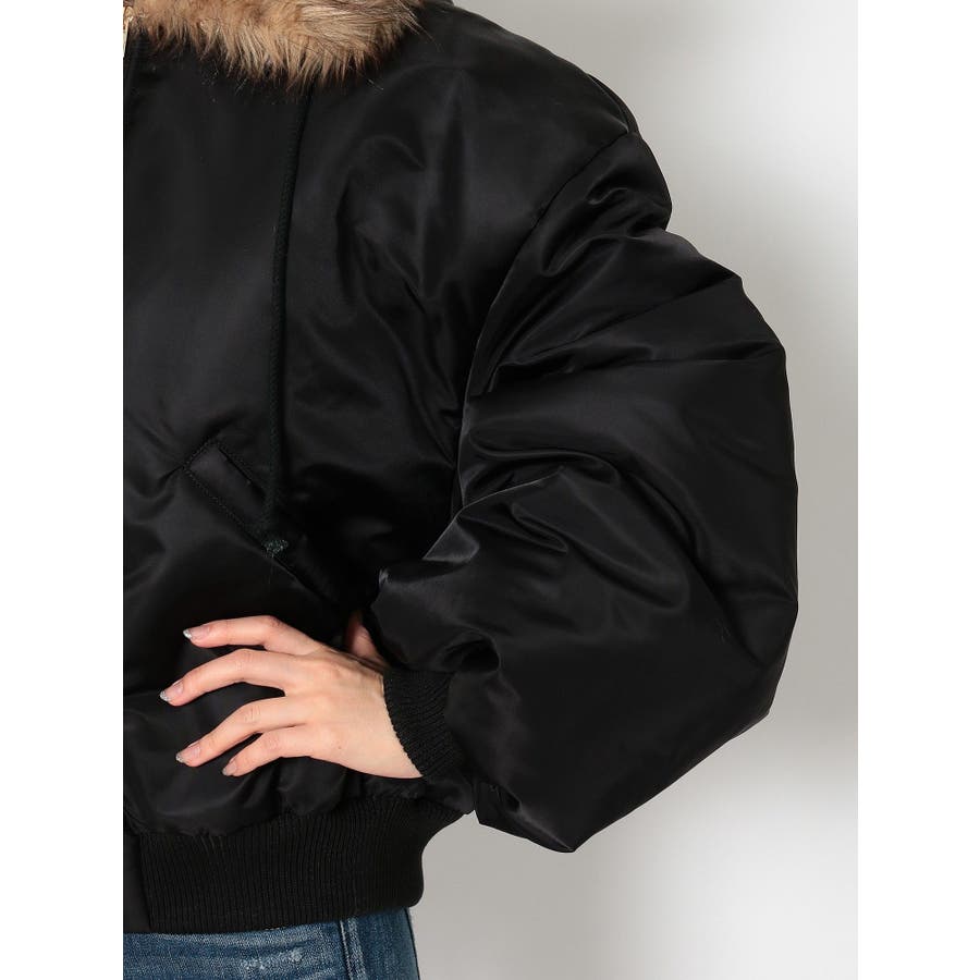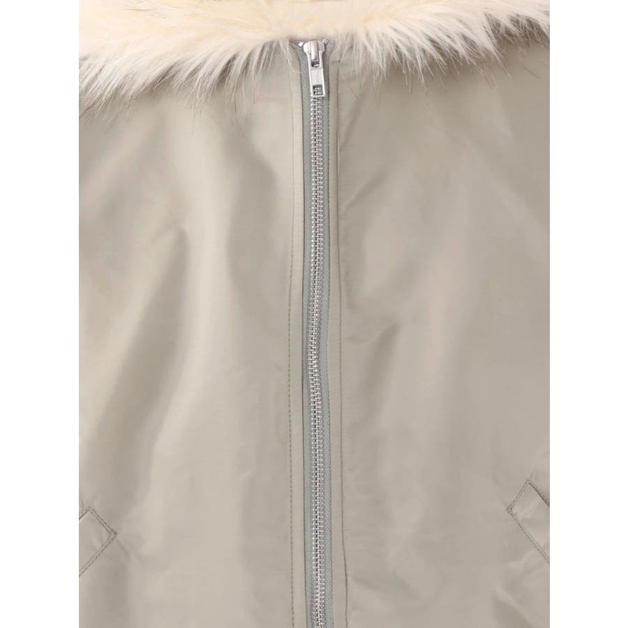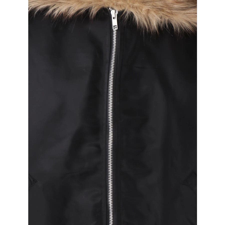| 素材 | 表地:ナイロン100% 裏地:ポリエステル100% 中わた:ポリエステル100% ファー部分:アクリル59% ポリエステル41% リブ:ポリエステル100% |
